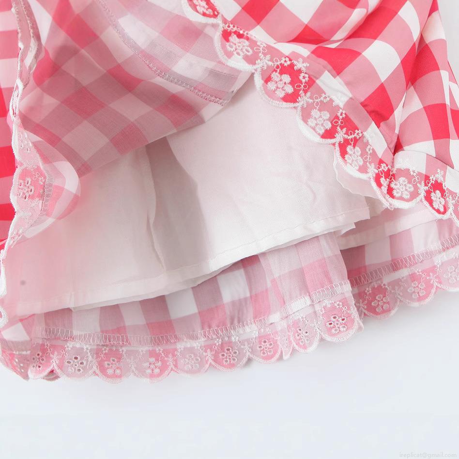 Checkered Pattern, Lace Trim, Gathering, Button, Vichy Check