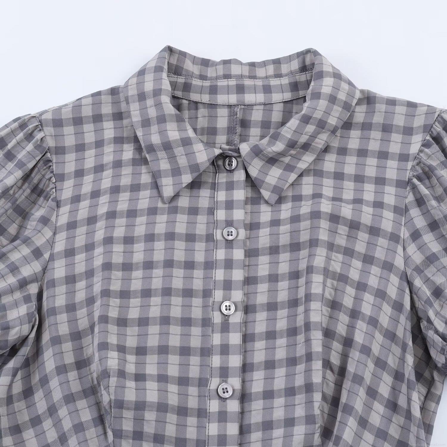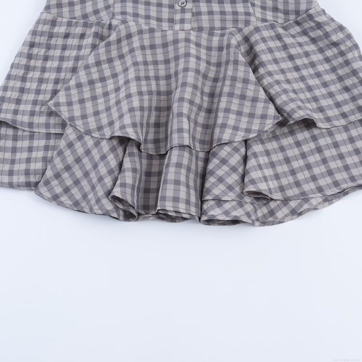 Checkered Pattern, Puff Sleeves, Cake Skirt, Layered Ruffles