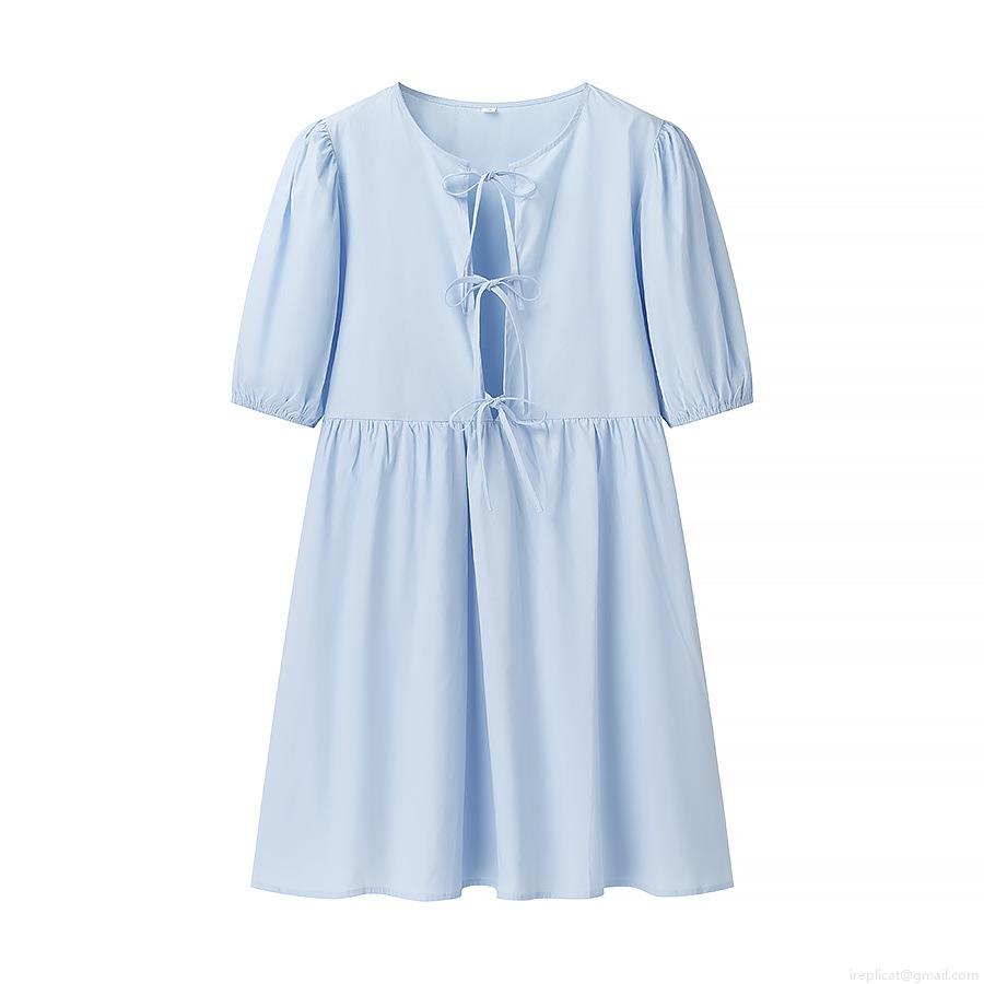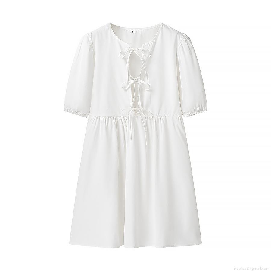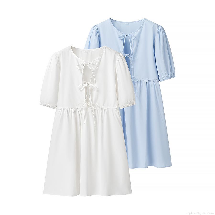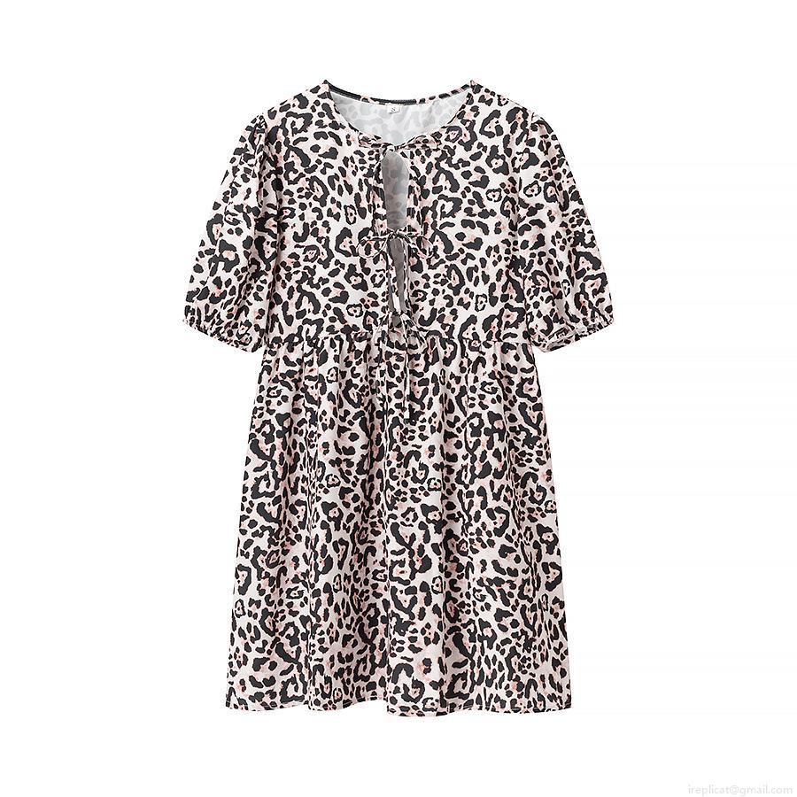 • Summer Women Tie Front Short Sleeve Mini Dress Fashion Crew Neck Polyester Leopard Print Dress For Casual Vacation Streetwear