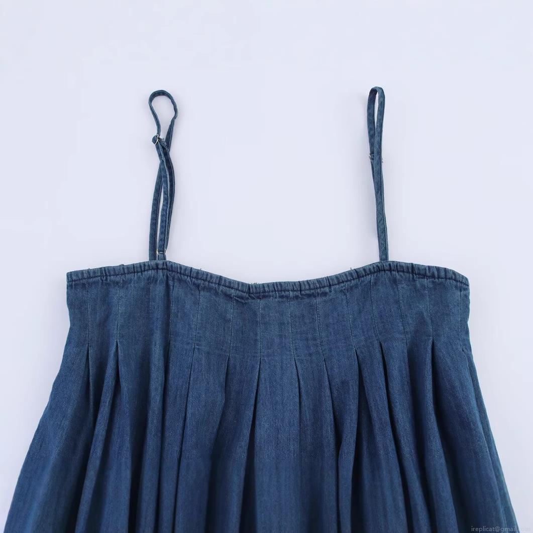 • Summer Women's Casual Denim Mini Dress Deep Blue Spaghetti Straps Pleated Camisole Dress Sleeveless Backless Streetwear For Women