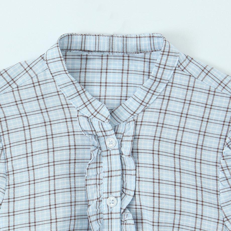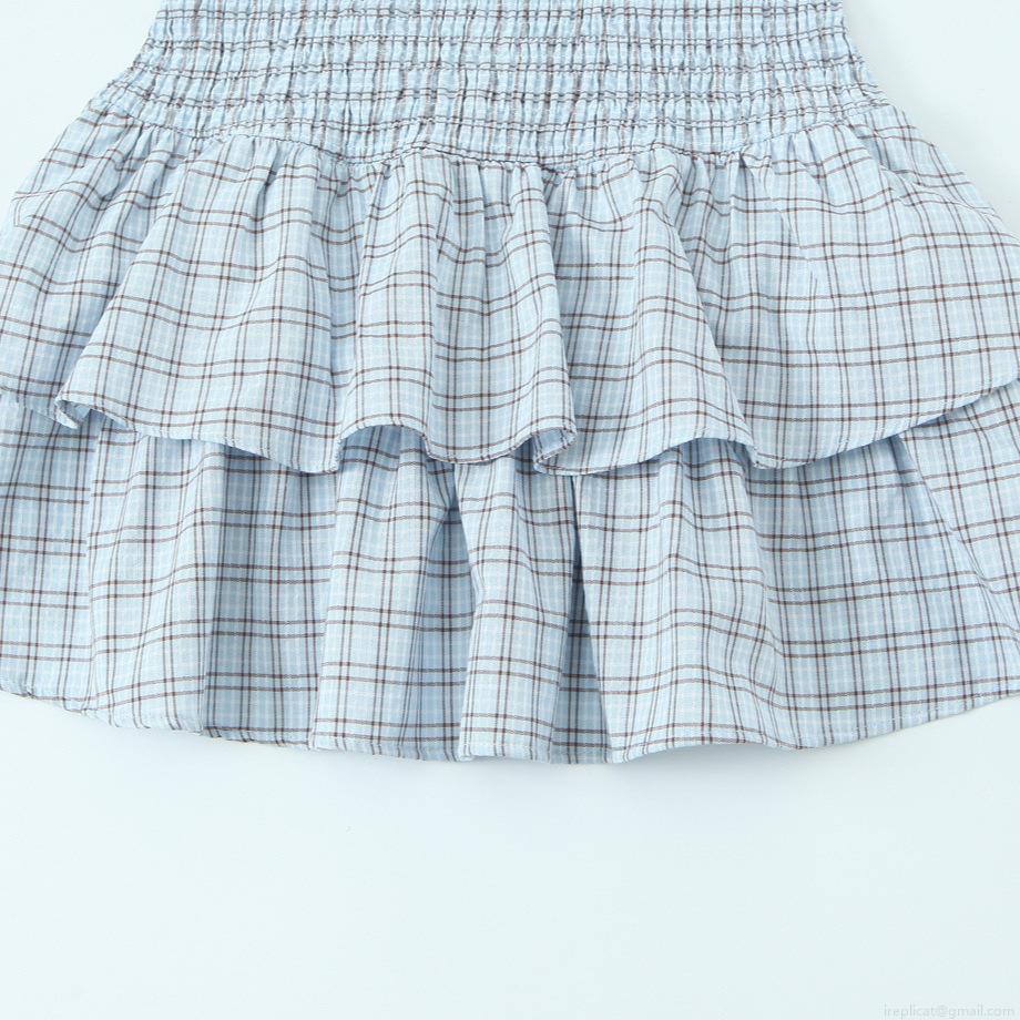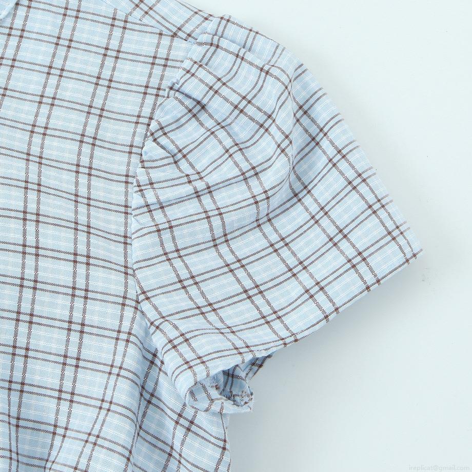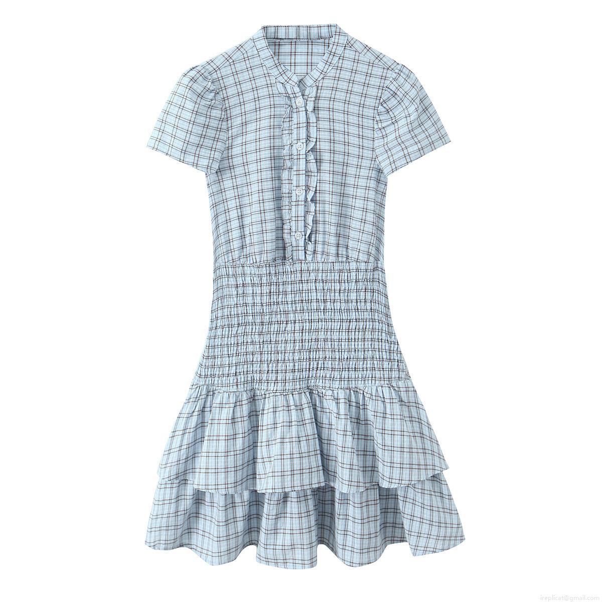 • Sweet Light Blue Plaid Tiered Mini Dress Women Ruffle Round Neck Short Sleeve Slim Fit Cotton Blend Summer Daily Dress Ladies