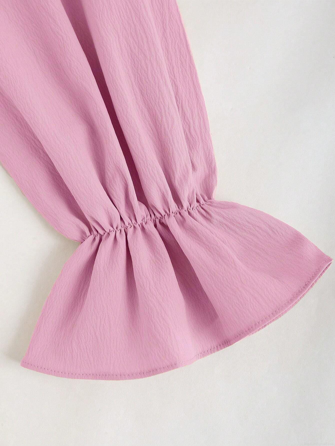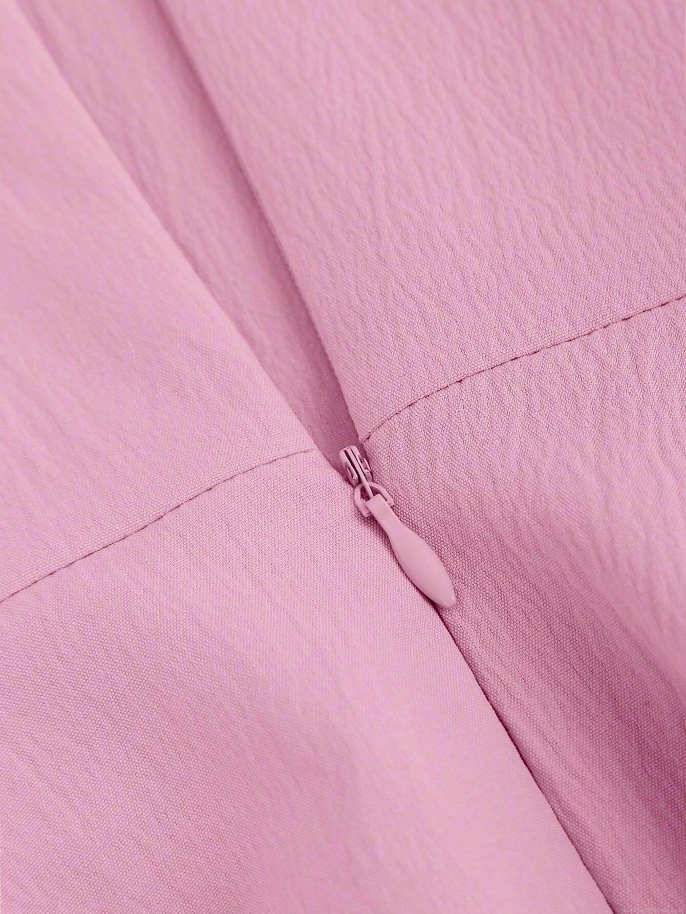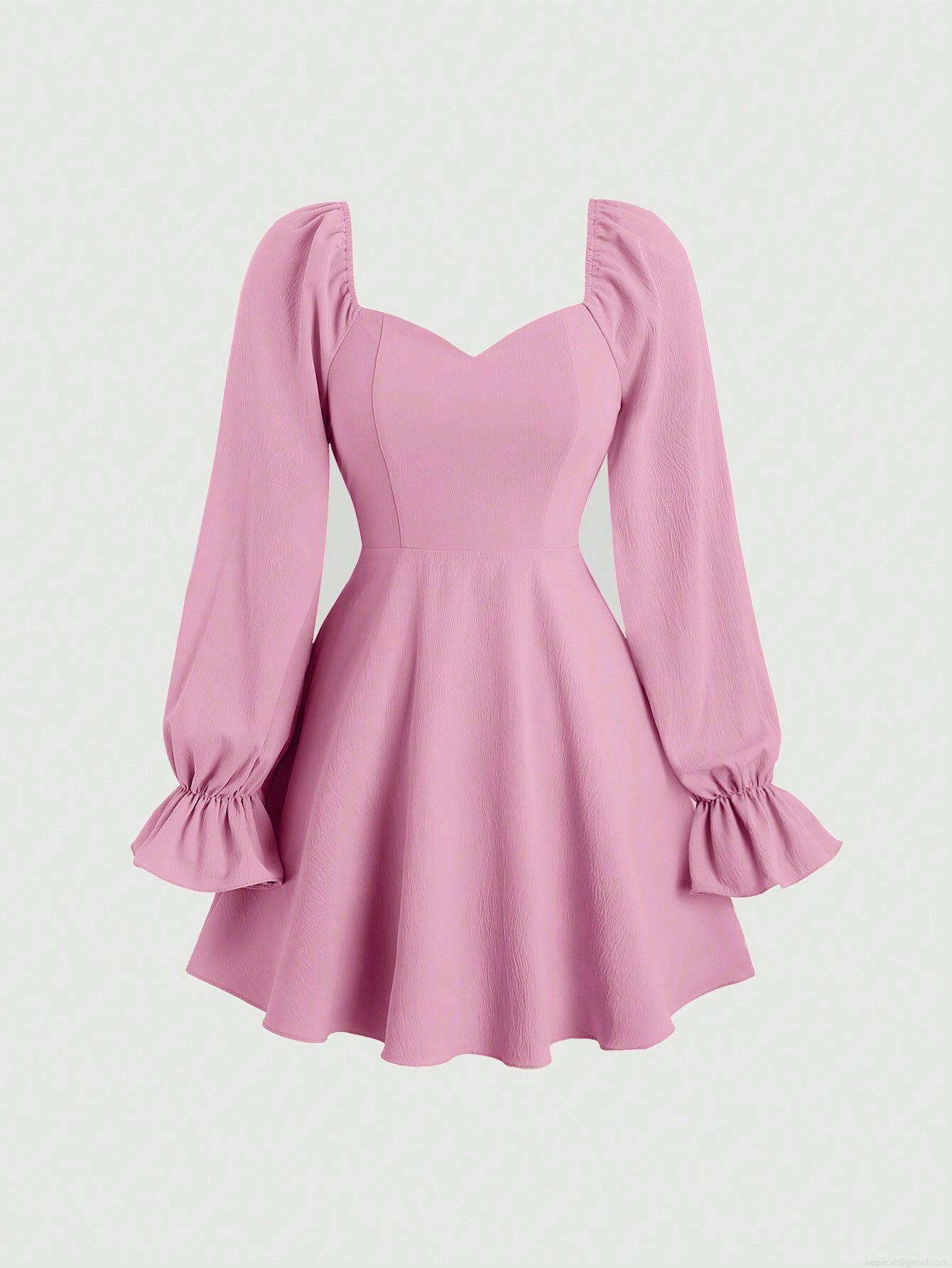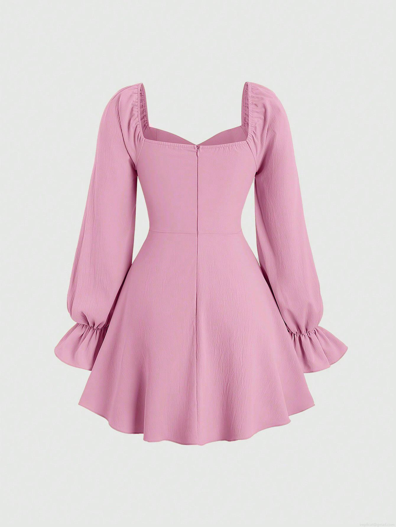 • Sweet Pink Long Sleeve Mini Dress For Women Square Neck Puff Sleeve Ruffle Cuff A-Line Slim Fit Casual Dating Party Dress 93% Polyester 7% Elastane Textured Fabric