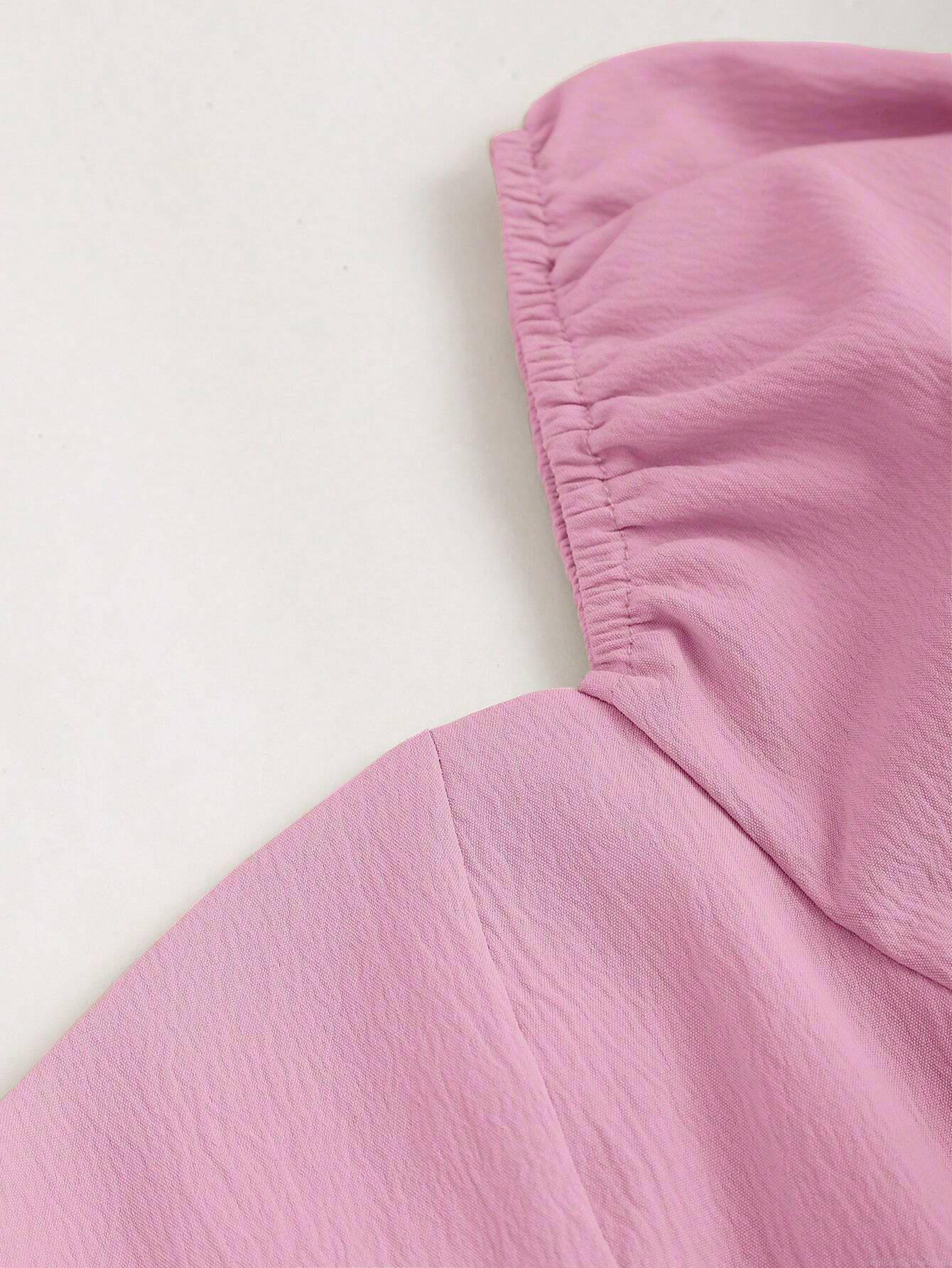 Solid Color, Pleats, Ruffles, Puff Sleeves, Square Collar