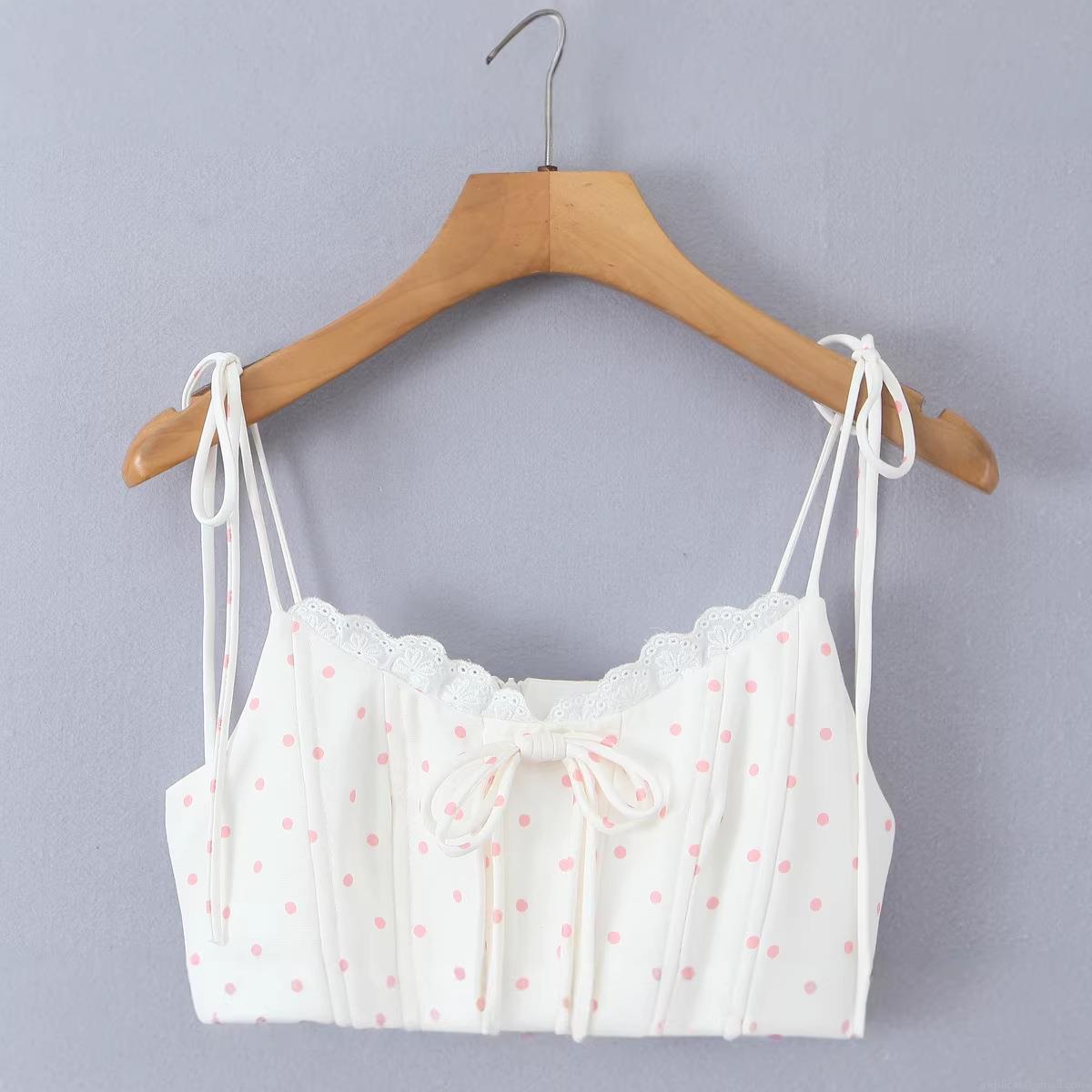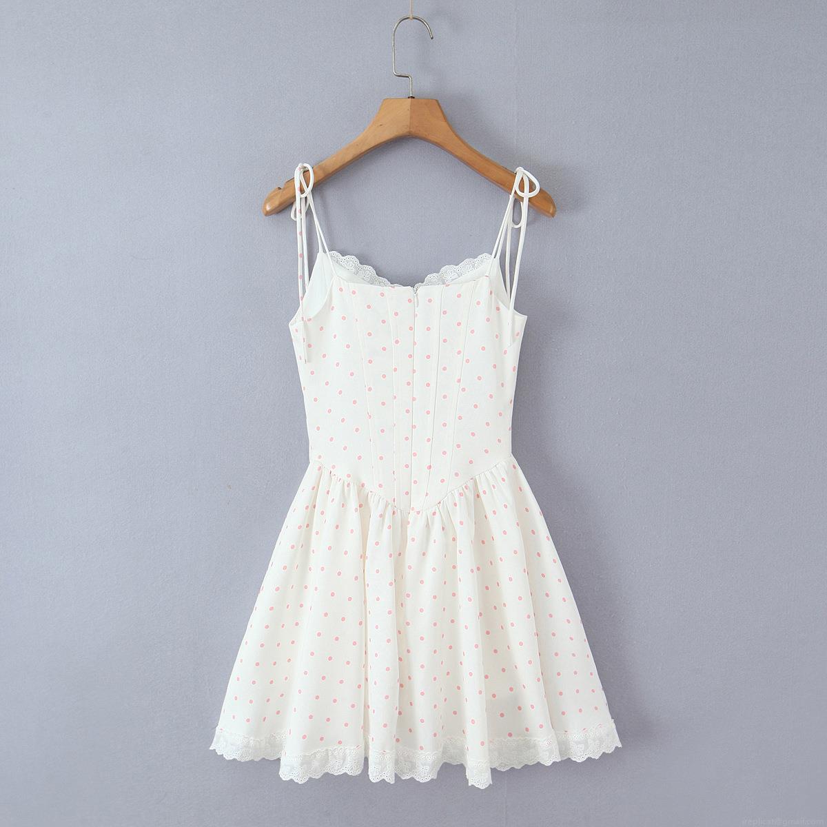 • Sweet Pink Polka Dot Lace Mini Slip Dress Women Summer Casual Sleeveless Slim Fit A-Line Cami Dress With Bow Tie Strap Vacation Outfits