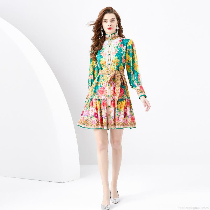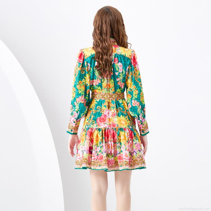 • Vintage Baroque Floral Print Mini Dress Women Lantern Sleeve Stand Collar Button Front Chiffon Dress With Belt Royal Style Elegant Spring Summer Short Dress