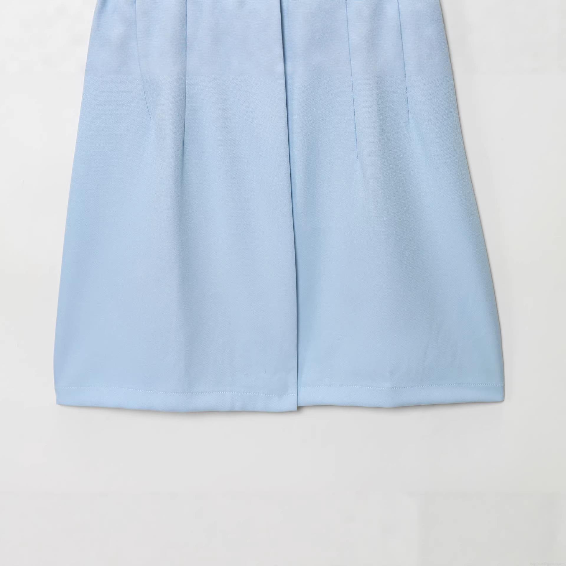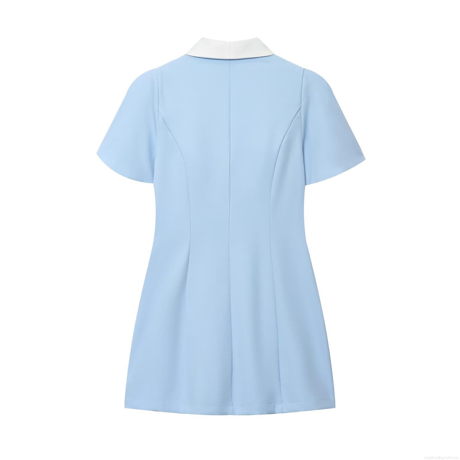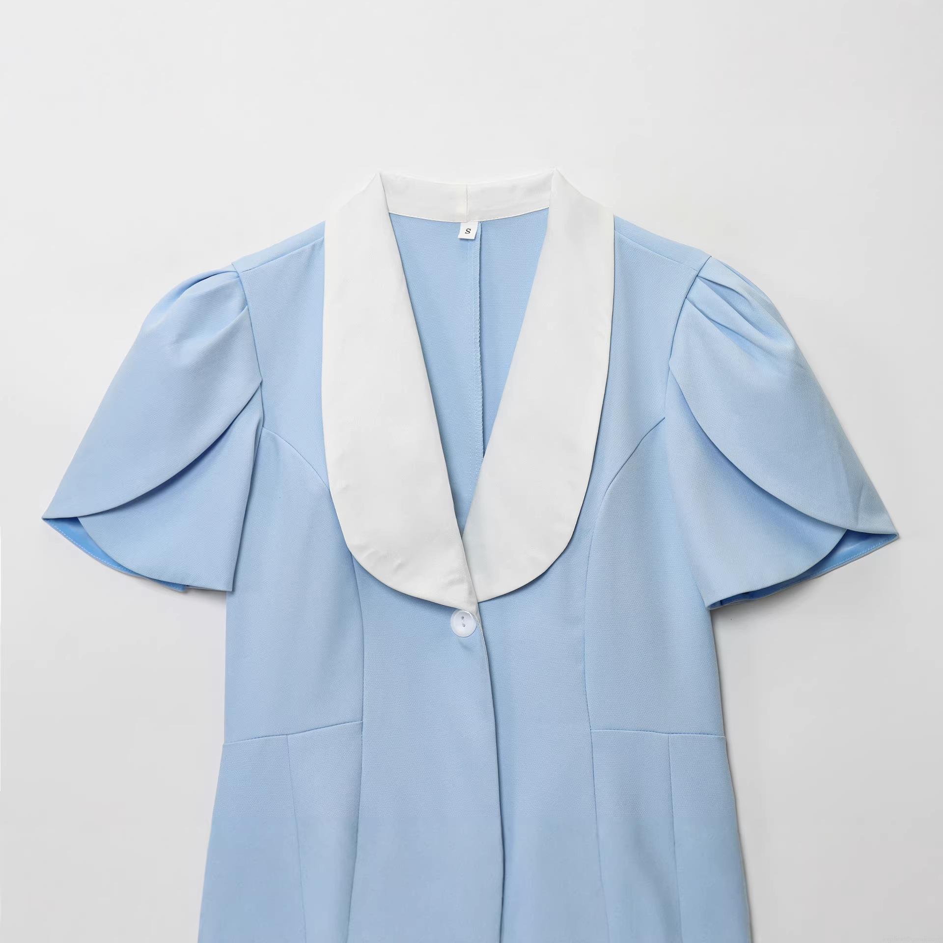 • Women Chic Blazer Style A-Line Mini Dress With Contrast White Lapel And Petal Short Sleeves Light Blue Polyester Patchwork Casual Office Streetwear Slim Fit Dress