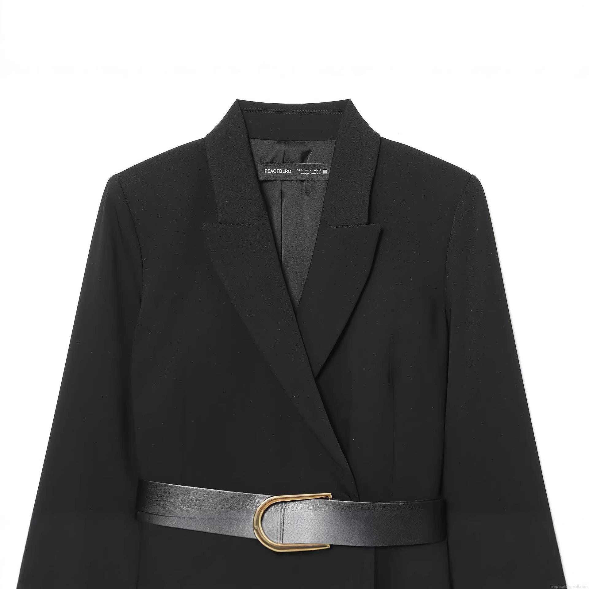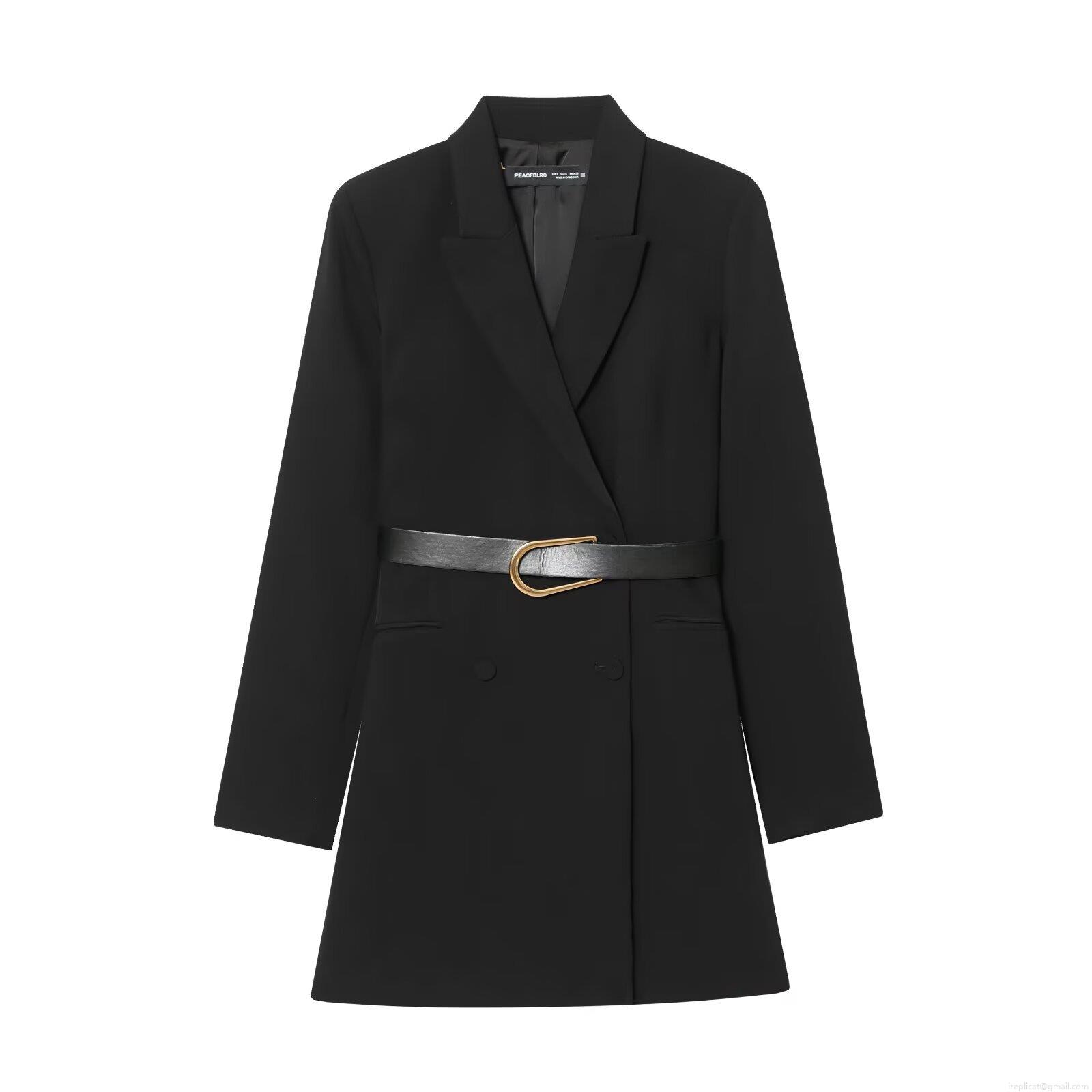 Solid Color, Waist shaping, Double-breasted, Suit Collar, U-shaped Metal Buckle