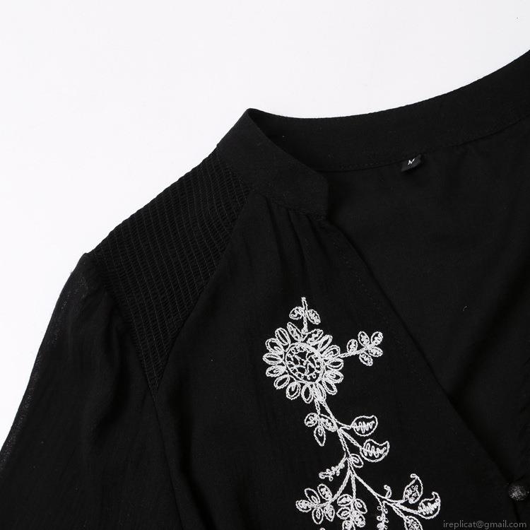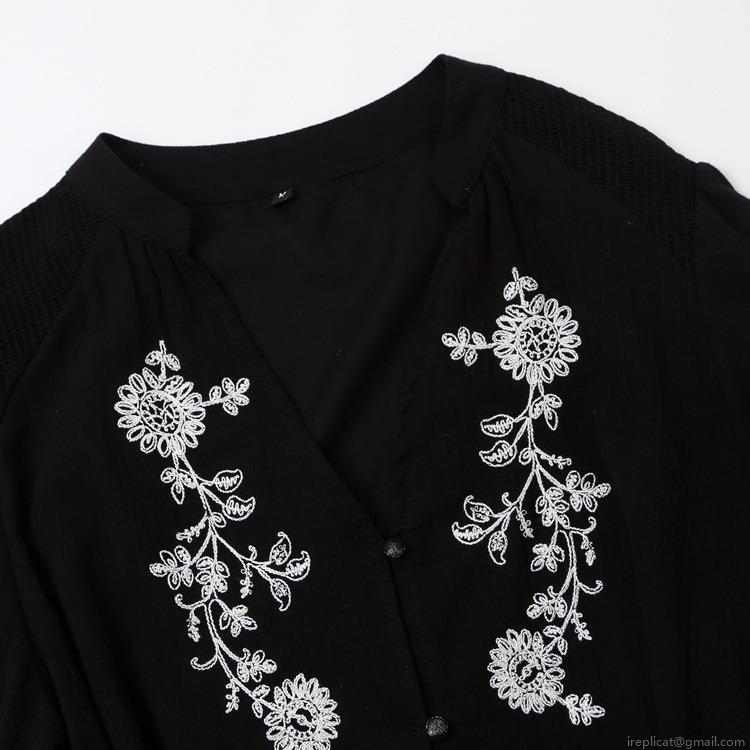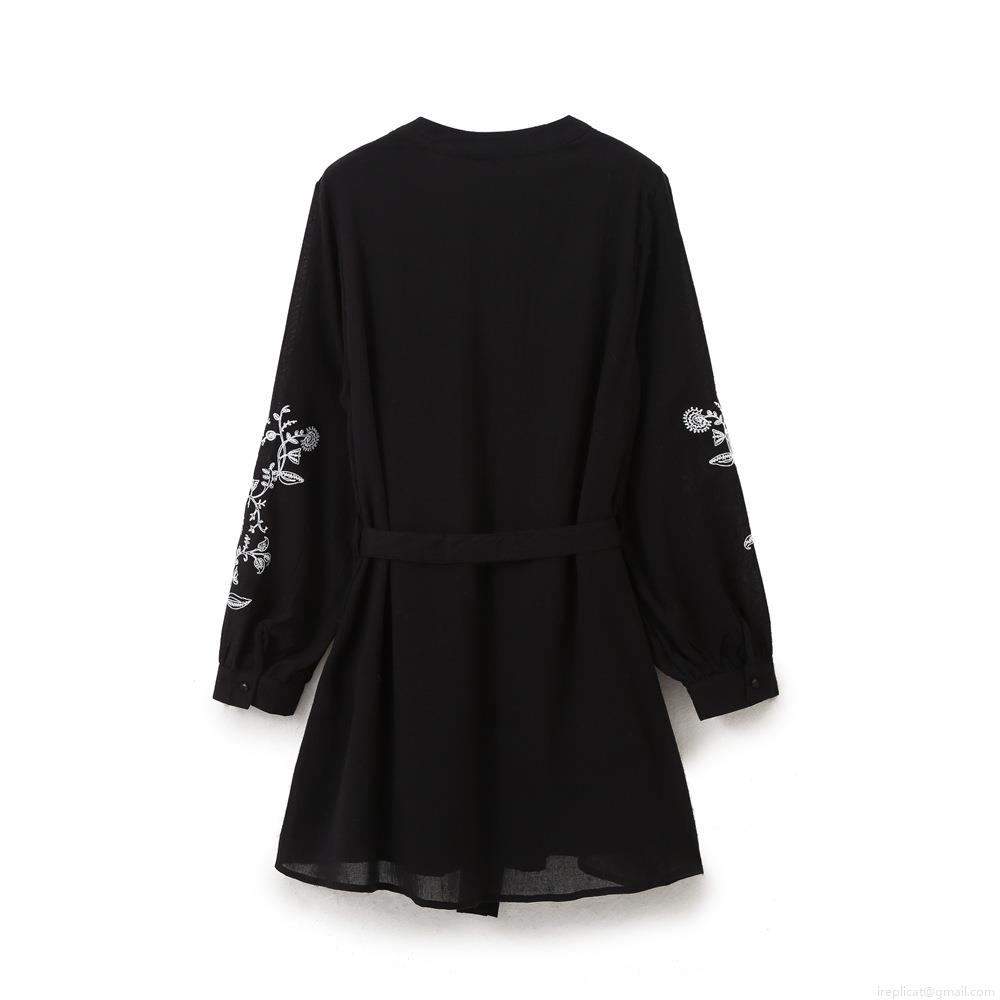 • Women Elegant Black Embroidery Mini Dress Cotton Blend V Neck Long Sleeve Mesh Patchwork Dress With Belt For Party Dating
