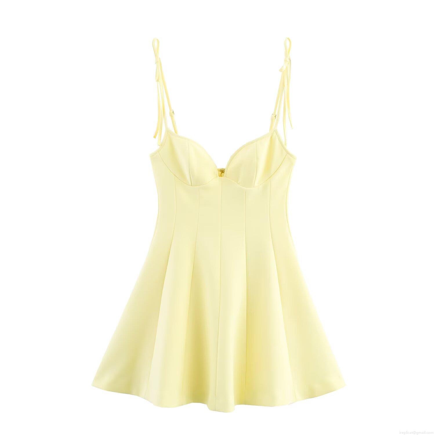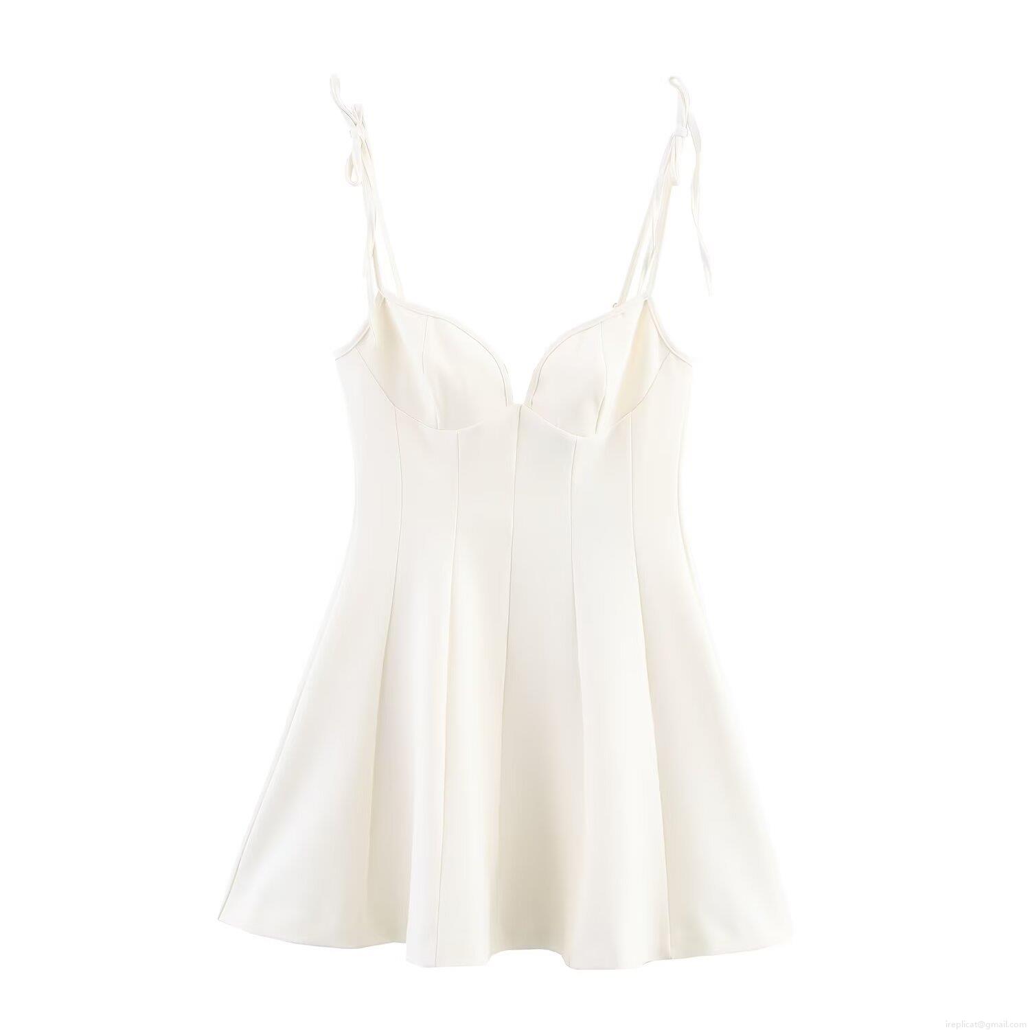 • Women Elegant Bow Tie Shoulder Strap Mini Dress Sexy V Neck Solid Color Sleeveless A-Line Short Sundress High Waist Polyester Party Clubwear Dress