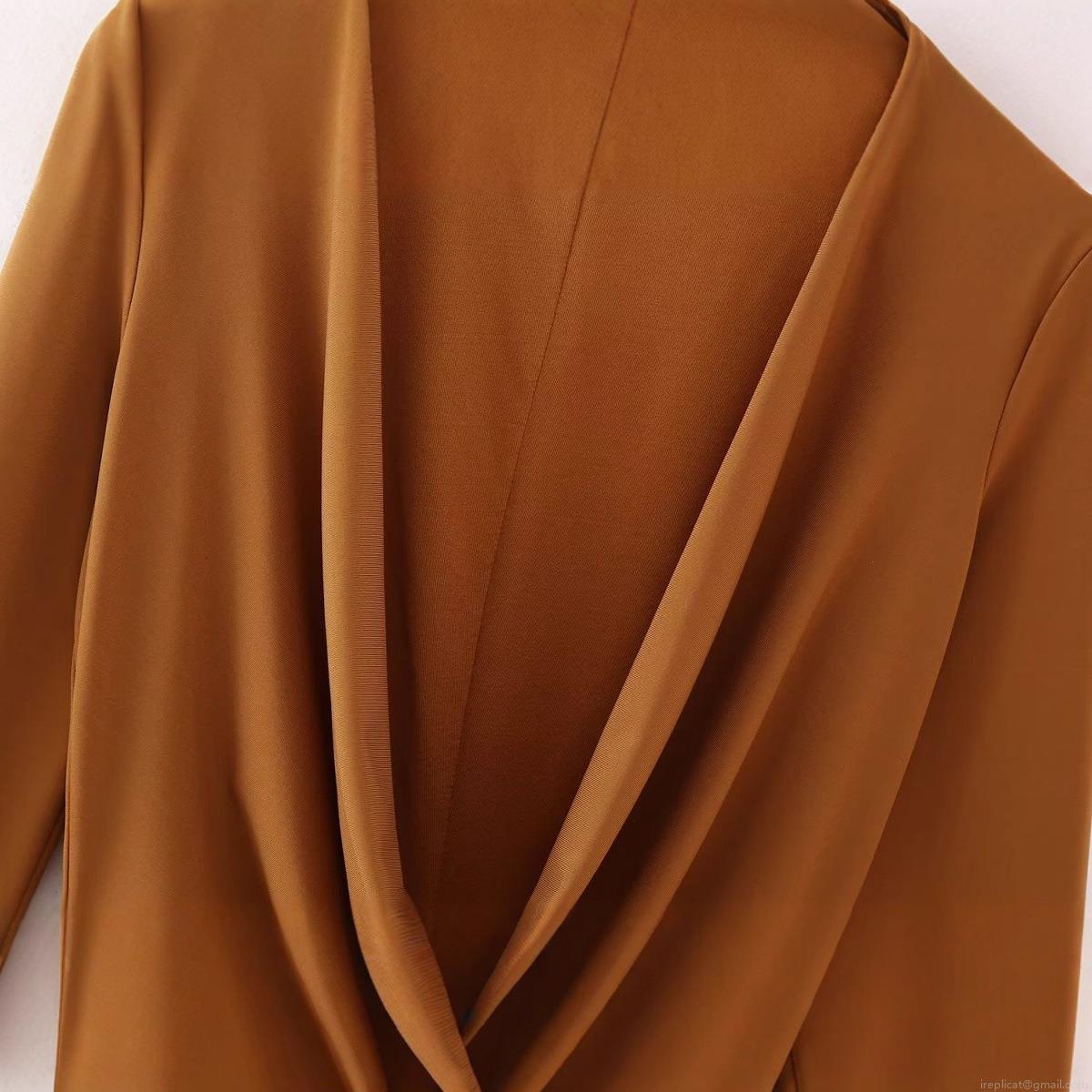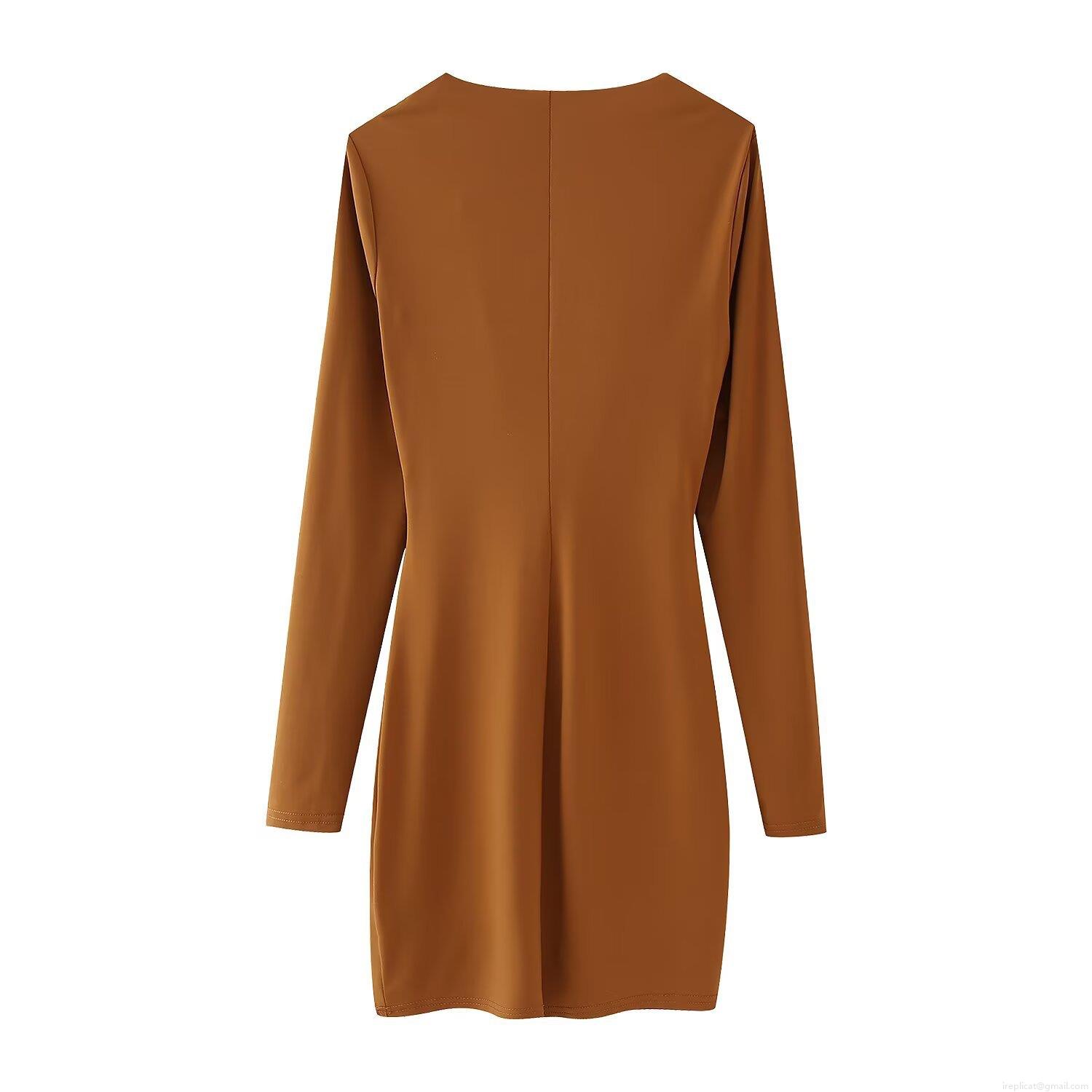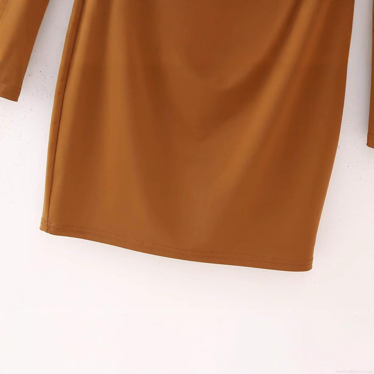 • Women Elegant Cowl Neck Backless Long Sleeve Mini Dress Solid Color 100% Polyester Silk Texture Slim Fit Sexy Party Nightclub Dress