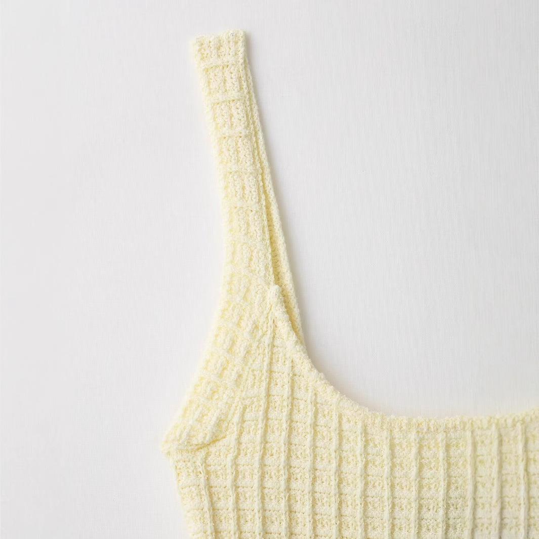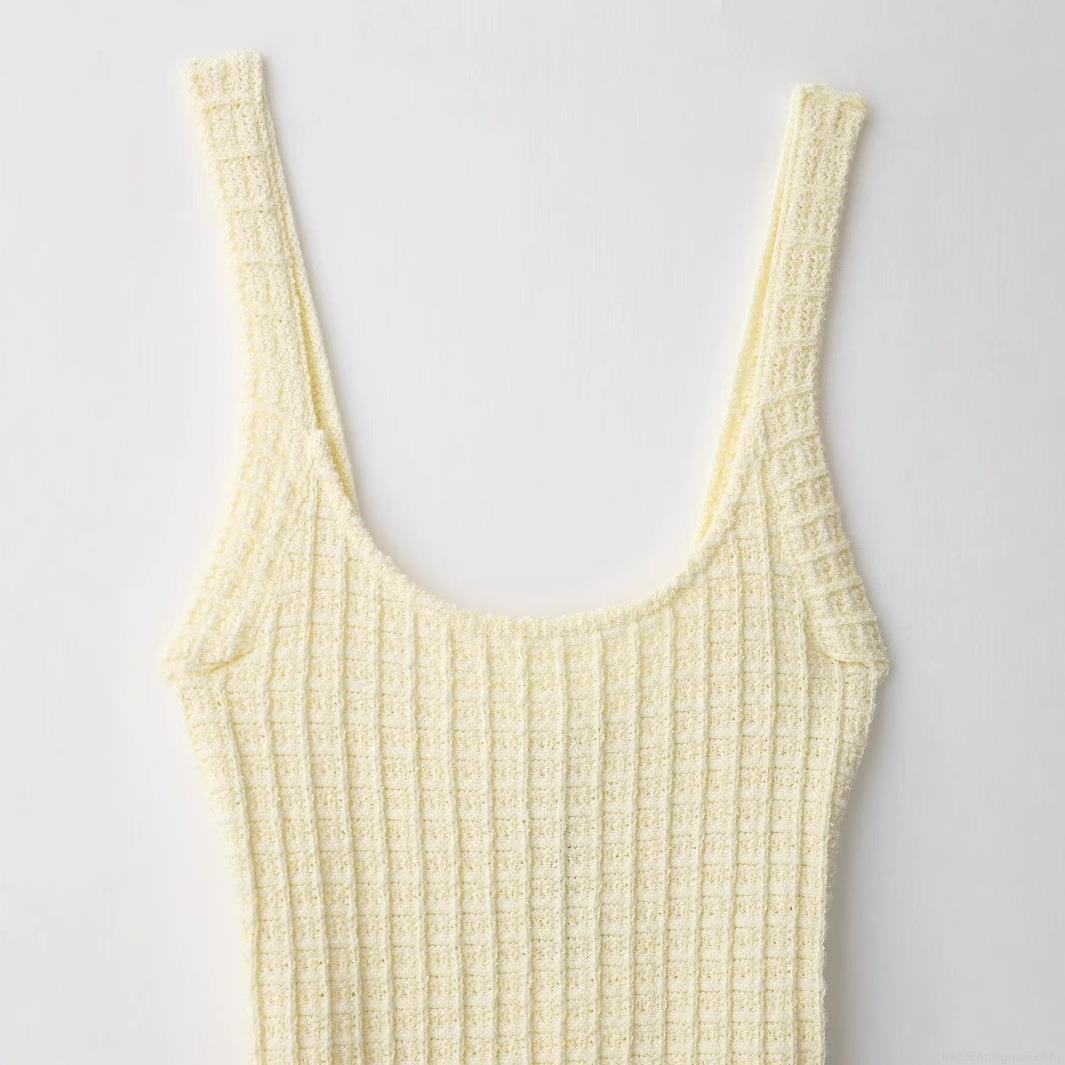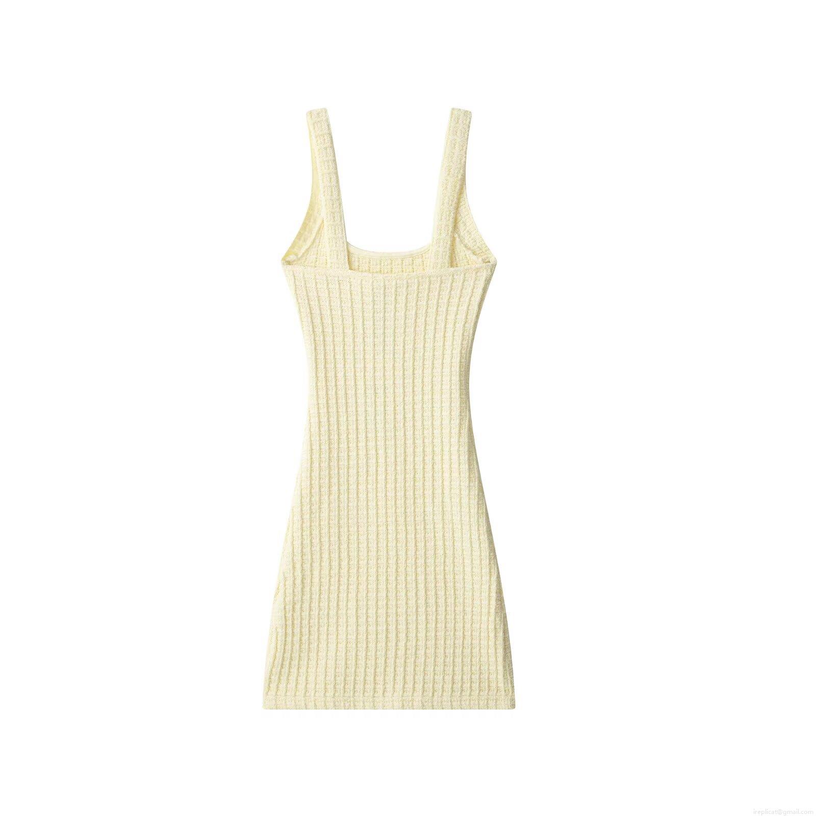 • Women Elegant Knitted Bodycon Mini Dress U-Neck Sleeveless Cami Dress With Decorative Gold Buttons Ribbed Texture Sexy Party Clubwear Dress