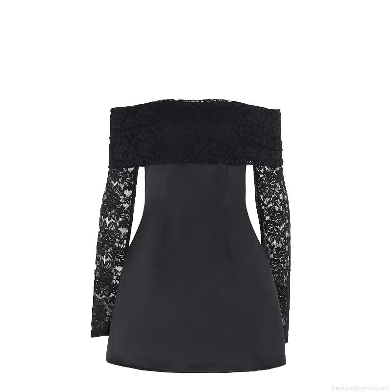 • Women Elegant Off-Shoulder Lace Patchwork Mini Dress Sexy Long Sleeve Satin Bodycon Party Dress Slim Fit Socialite Style Cocktail Dresses For Banquet Event