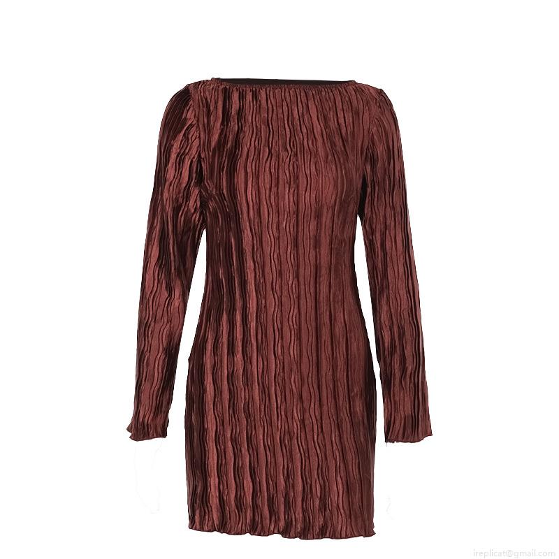 • Women Elegant Pleated Texture Bodycon Mini Dress Long Sleeve Crew Neck Slim Fit Polyester Spandex Solid Color Sexy Party Club Dress For Women