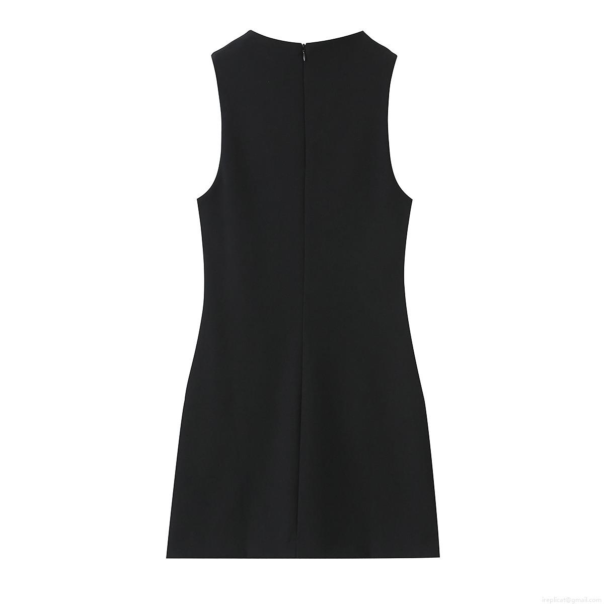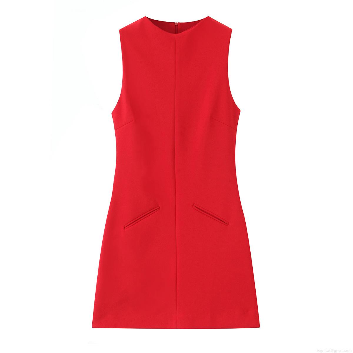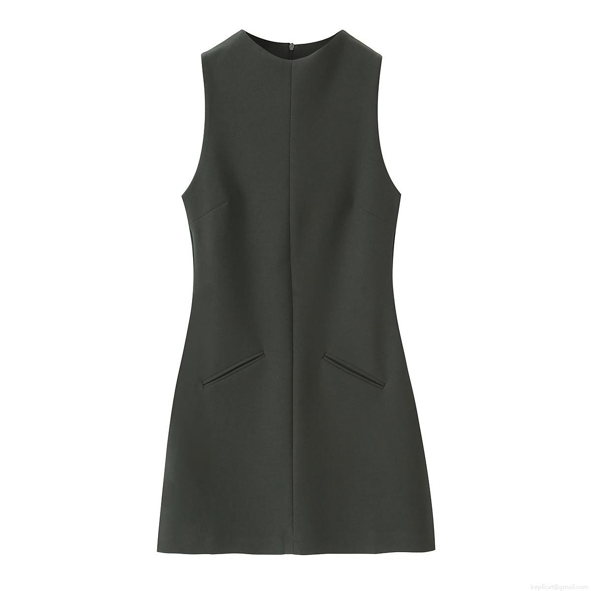 • Women Elegant Polyester Sleeveless Round Neck Mini Dress Solid Color Slim Fit A-Line Dress With Pockets For Party Club Wedding Guest Daily Wear Lady Outfits