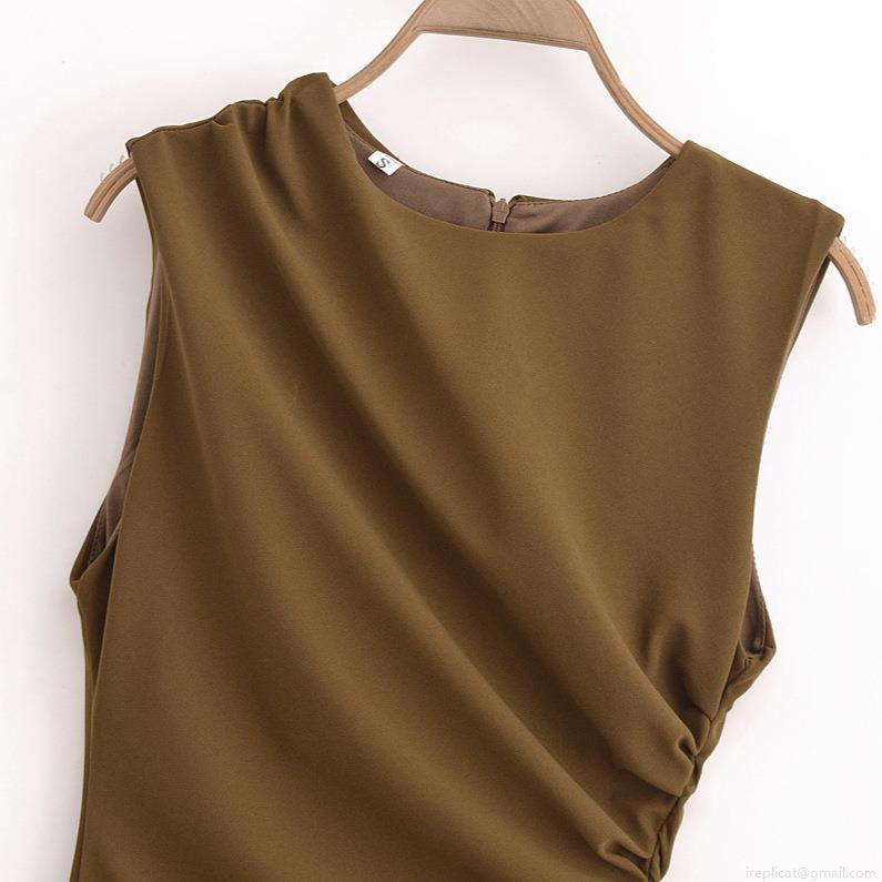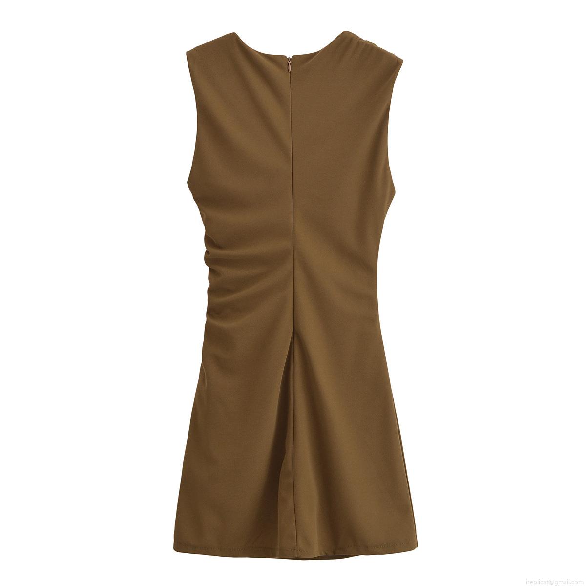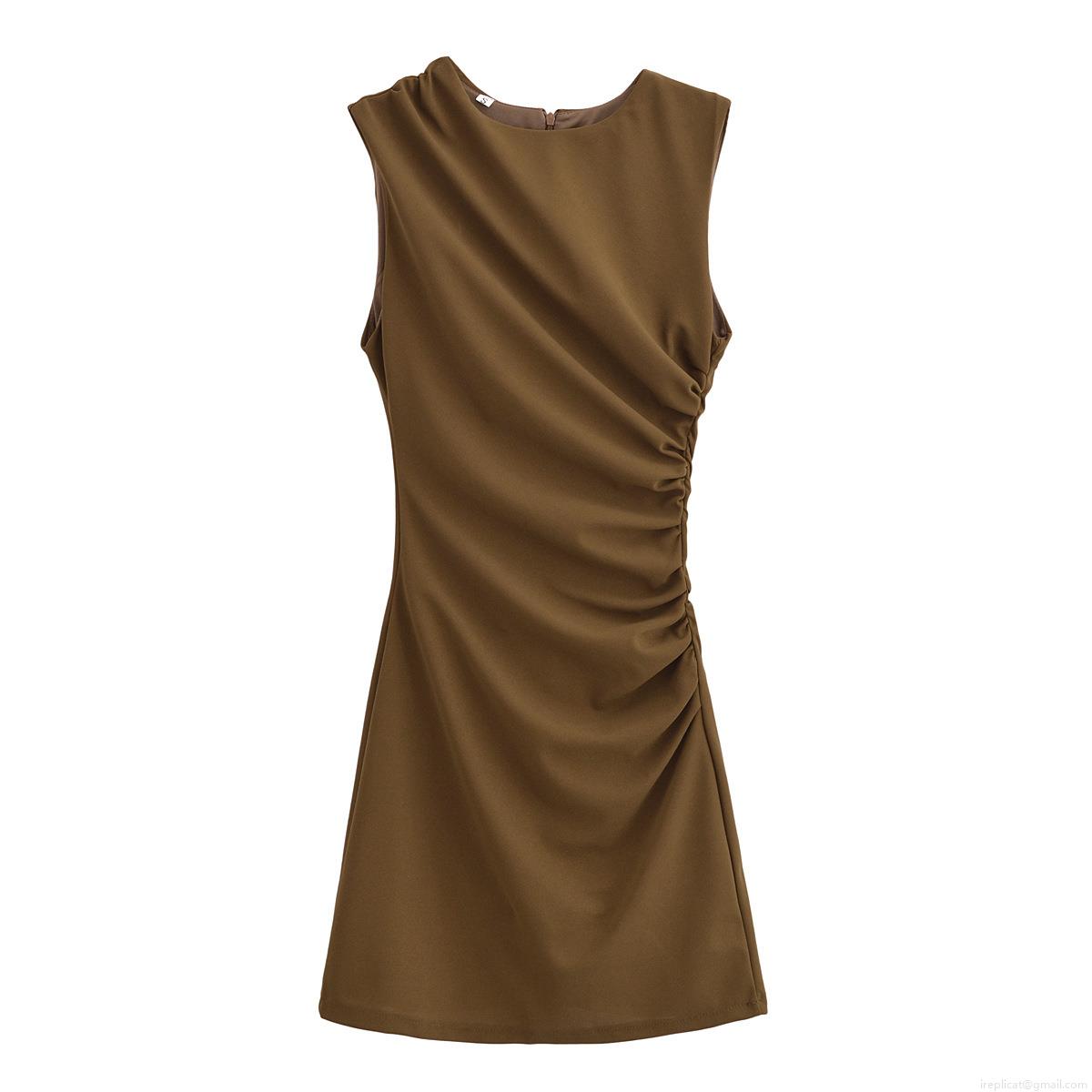 • Women Elegant Ruched Sleeveless Mini Dress Solid Color Round Neck High Waist A-Line Polyester Spandex Dress For Party Dating Casual Wear Summer Autumn