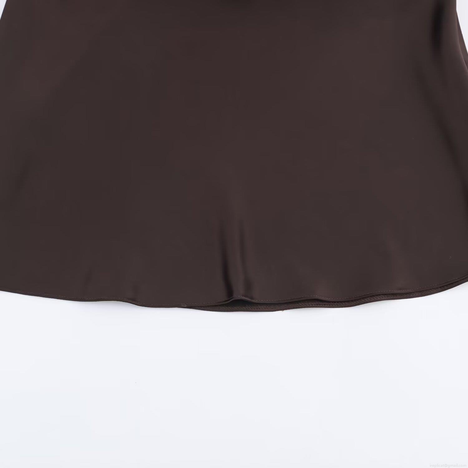 • Women Elegant Satin Acetate Long Sleeve Mini Dress With Scarf Tie High Neck Chocolate Brown Silk Texture Bodycon Party Evening Wrap Dress Autumn Fashion