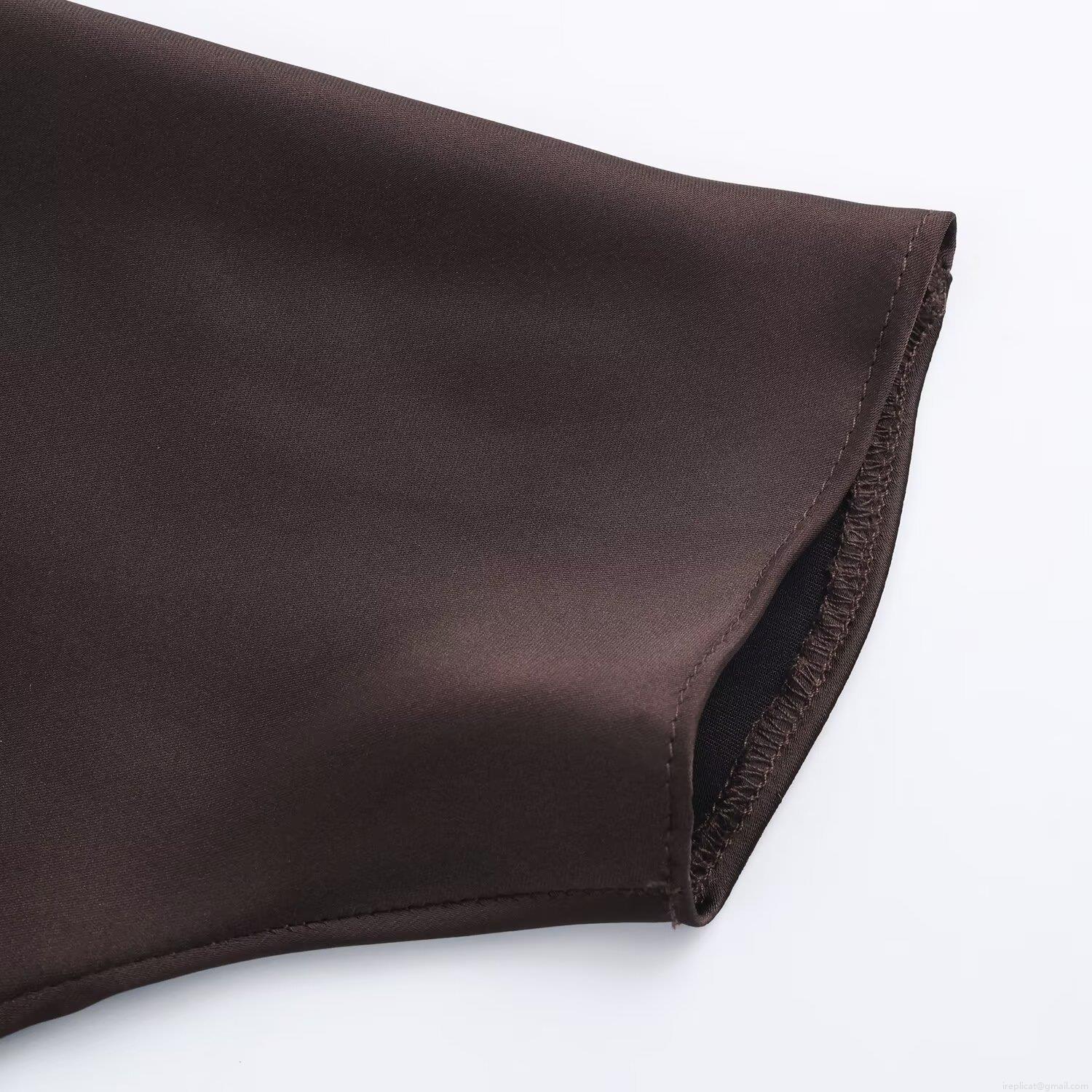 Solid Color, Gathering, Scarf Collar, High-gloss Satin, Invisible Zipper