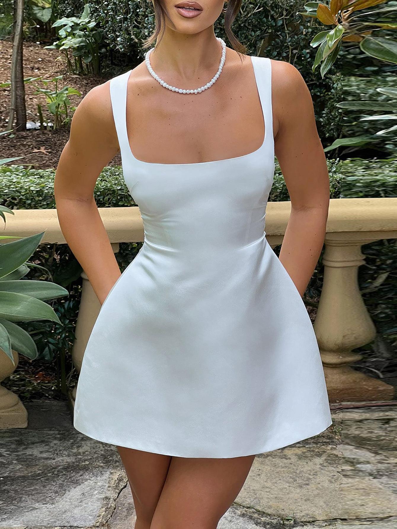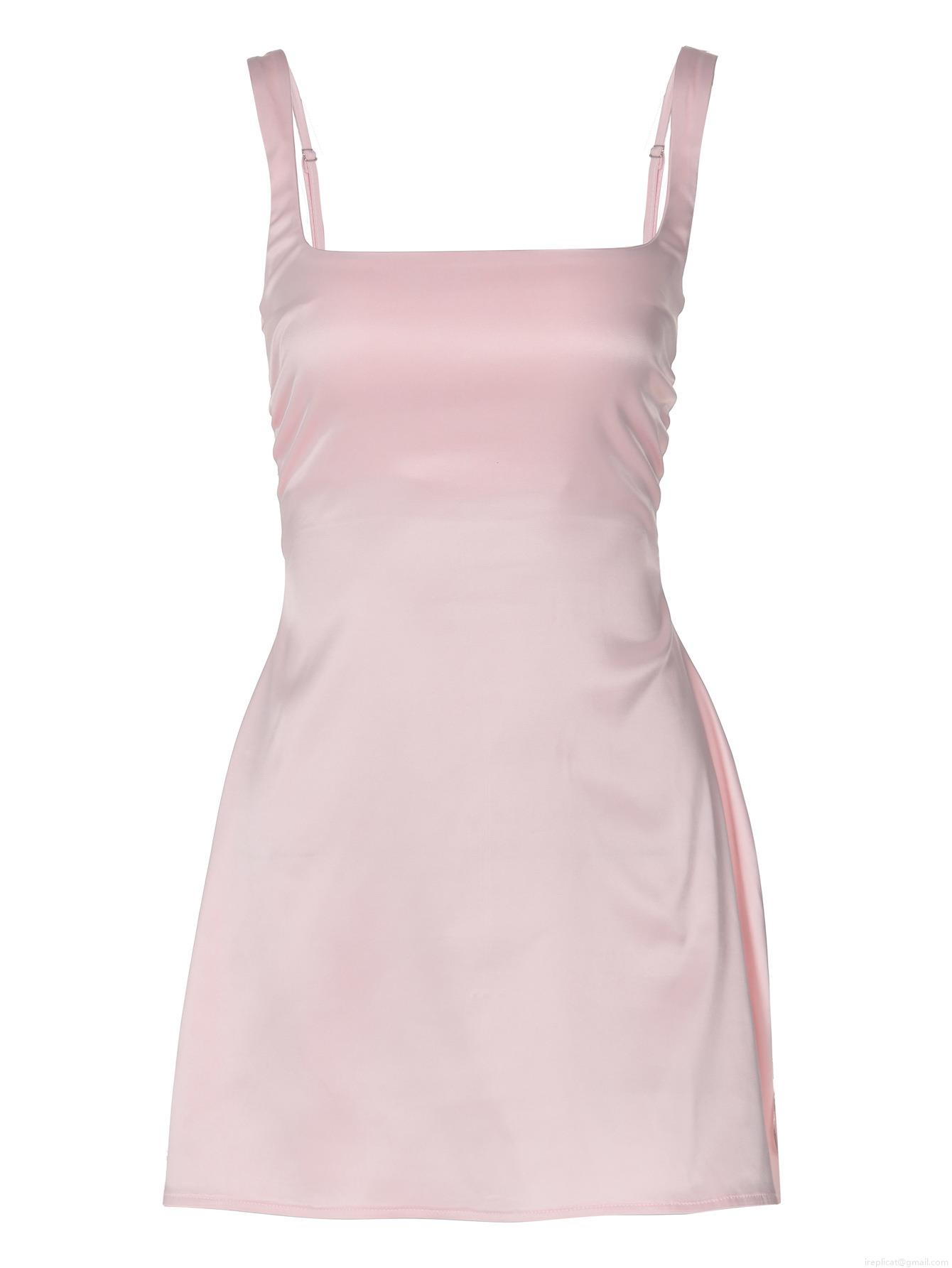 • Women Elegant Satin Slip Mini Dress Square Neck Adjustable Straps Slim Fit A-Line Sexy Party Cocktail Solid Color Summer Dresses For Women