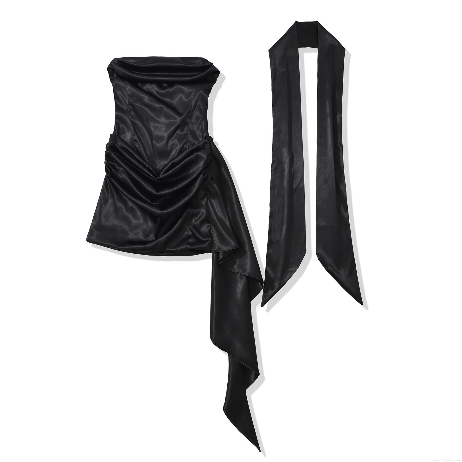 • Women Elegant Satin Strapless Bodycon Mini Dress Sexy Ruched Sleeveless Party Club Dress With Matching Scarf Streamer Solid Color Polyester Slim Fit Dresses