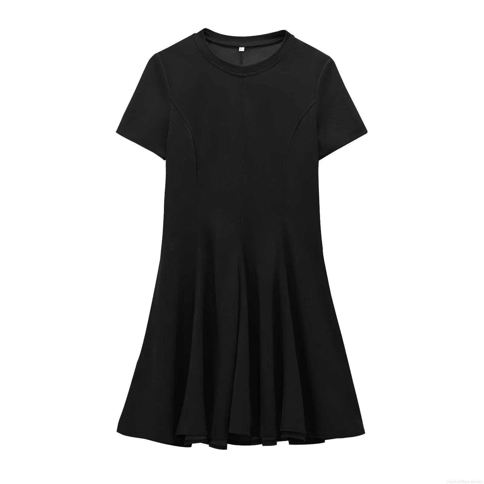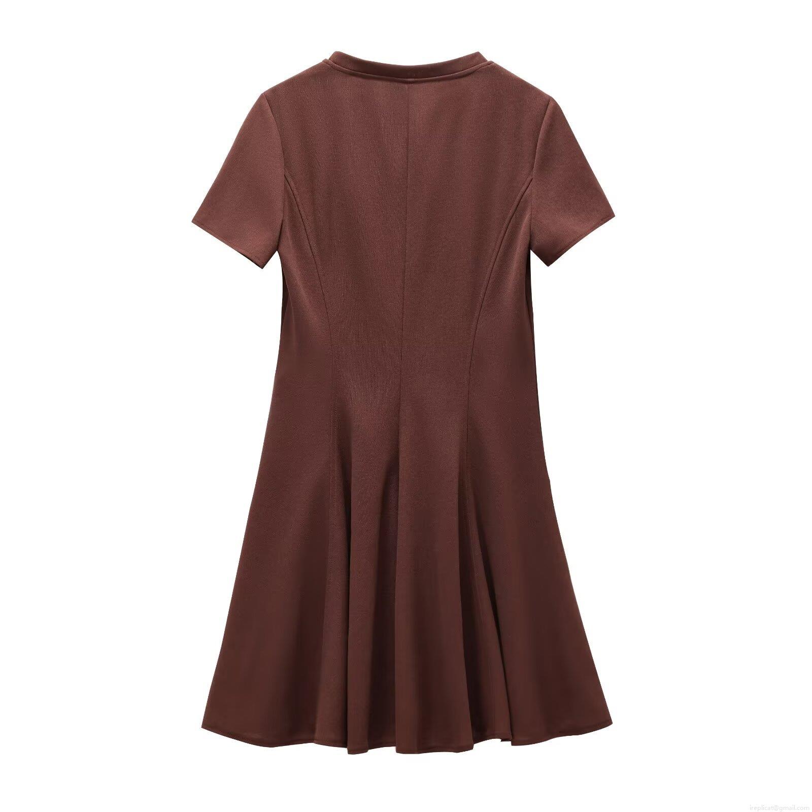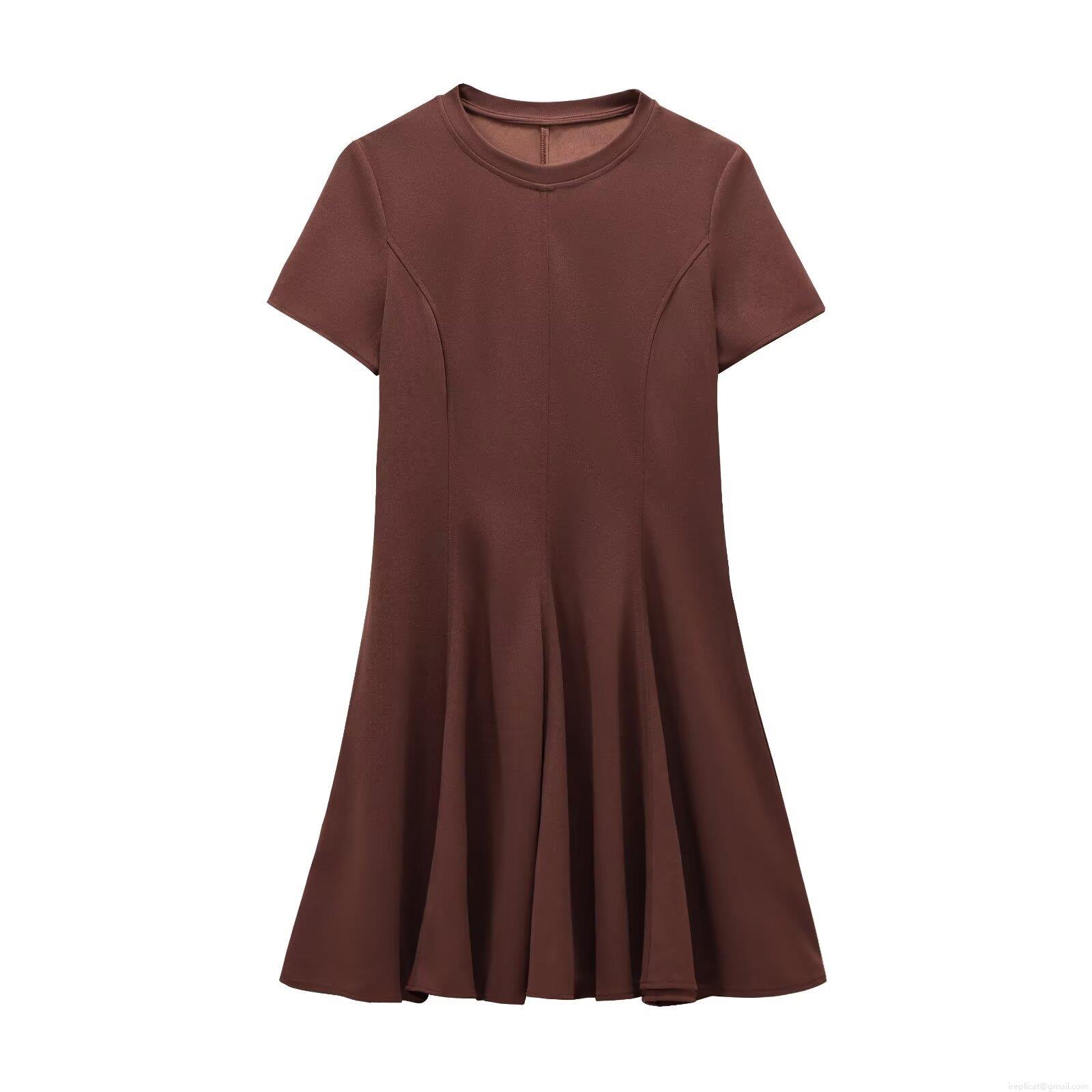 • Women Elegant Short Sleeve A-Line Mini Dress Solid Color Round Neck Slim Fit High Waist Wavy Hem Casual Party Fashion Polyester Dress