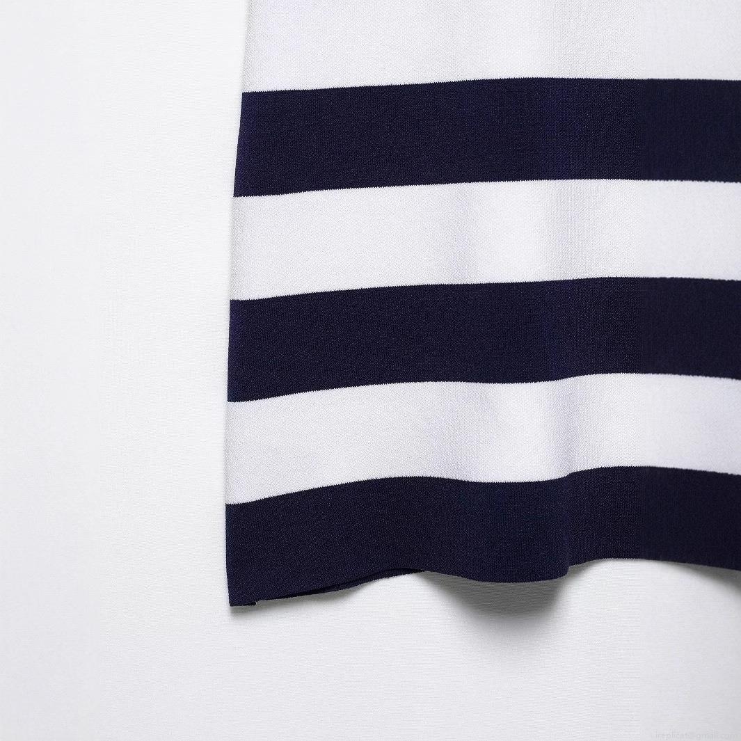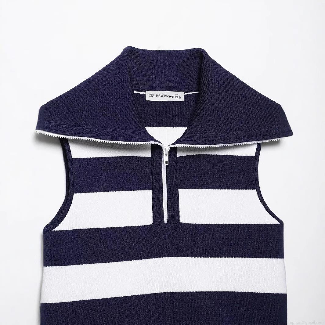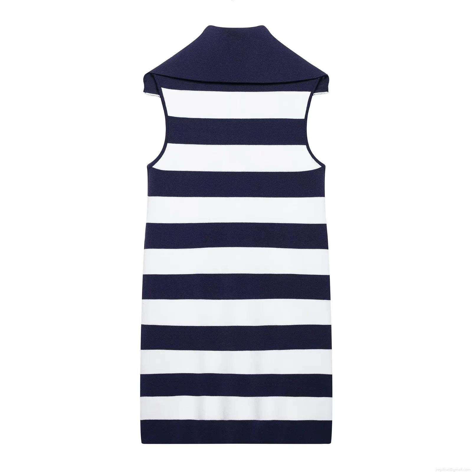• Women Elegant Sleeveless Knit Striped Mini Dress With 1/4 Zipper Lapel POLO Neck Navy Blue White Horizontal Striped Short Bodycon Dress For Casual Daily Wear