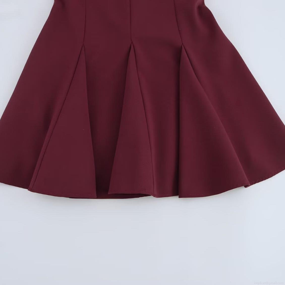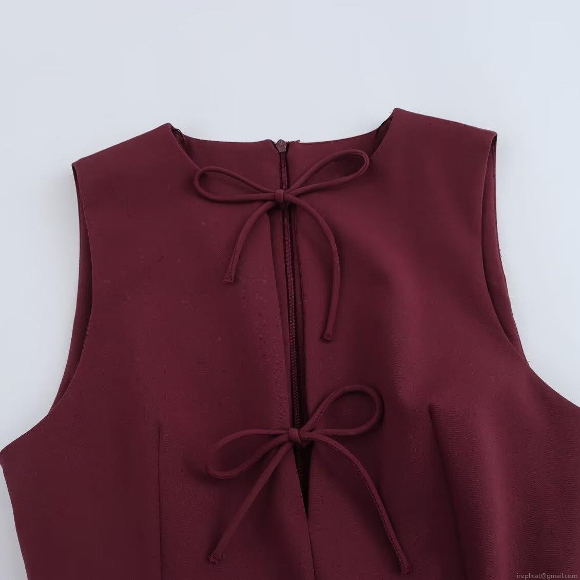 • Women Elegant Sleeveless Mini Dress With Bow Tie Round Neck Pleated Hem Solid Color Polyester Spandex Blend Commuter A-Line Dress For Office Party Daily