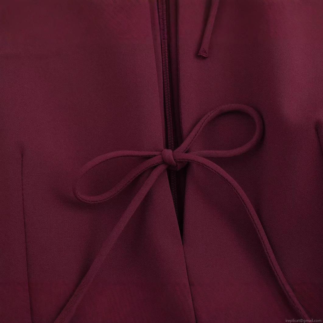 Solid Color, Bow, Pleated Design, Invisible Zipper