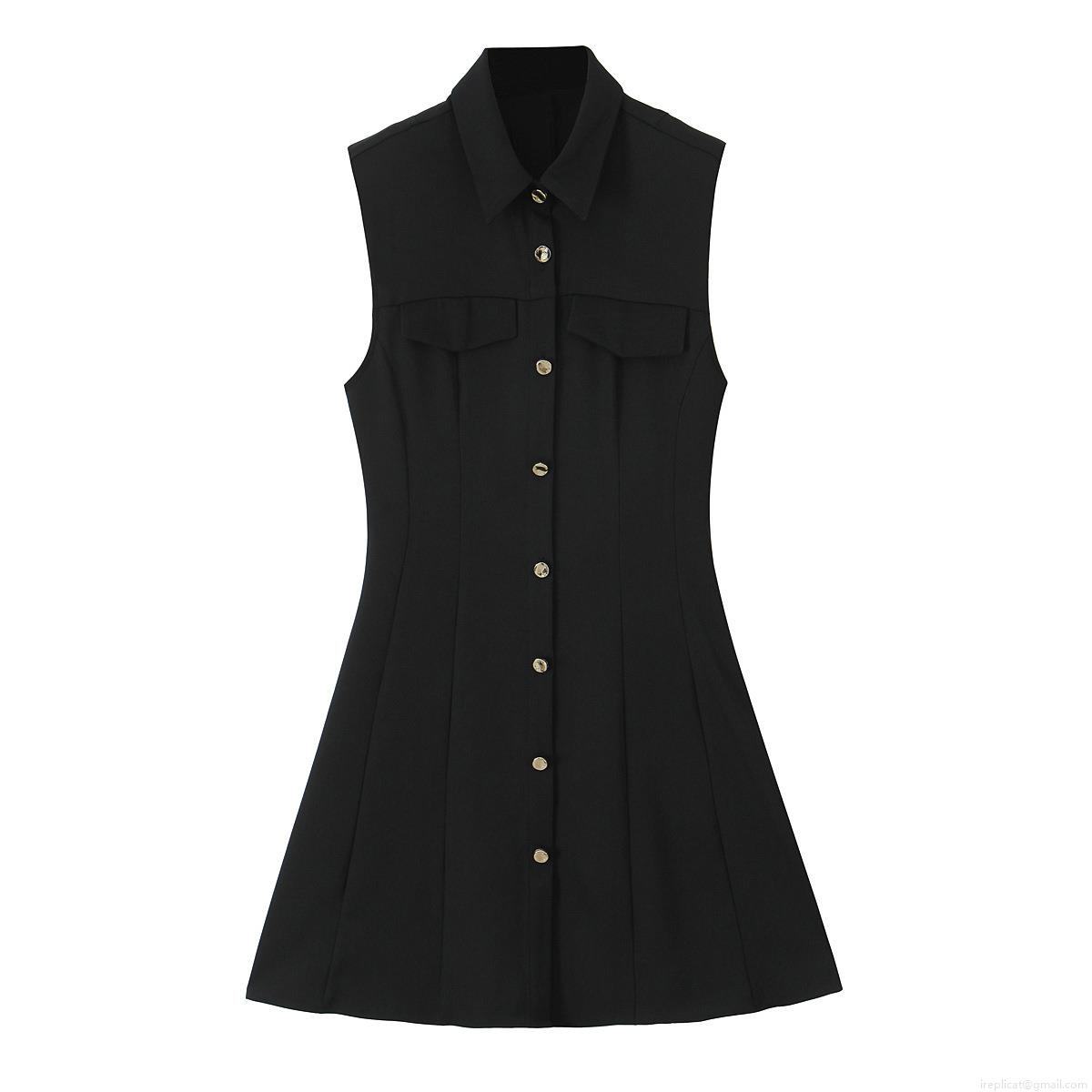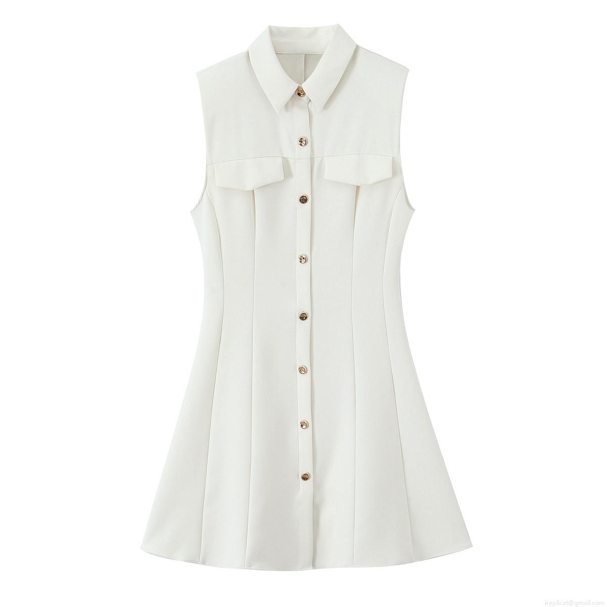 • Women Elegant Sleeveless Shirt Mini Dress Solid Color Lapel Collar Button Down Dress with Pockets A-Line Casual Party Dress
