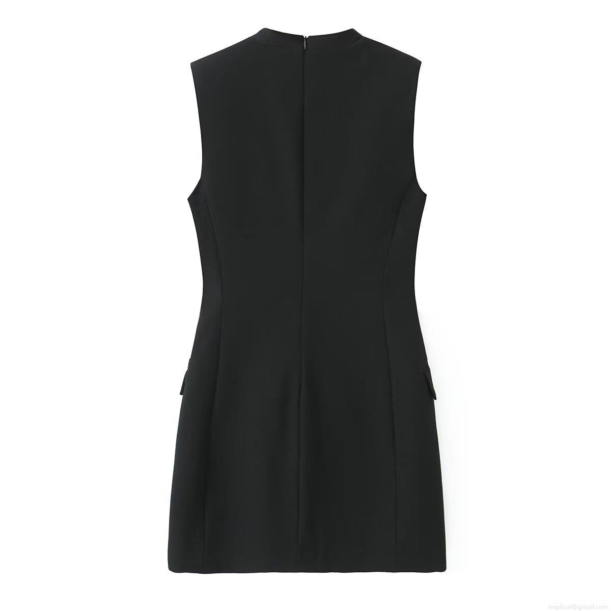 • Women Elegant Sleeveless Suit Mini Dress V-Neck Slim Fit Blazer Dress With Shoulder Pads Back Zipper Office Lady Cocktail Party Dress