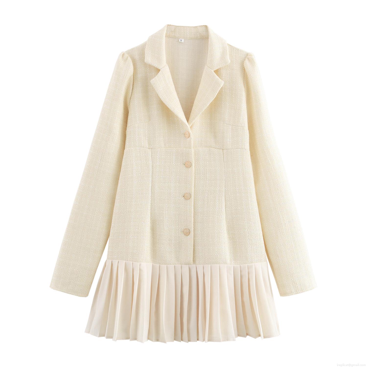 Solid Color, Splice, Pleats, Tweed, Gold Buttons, Suit Collar