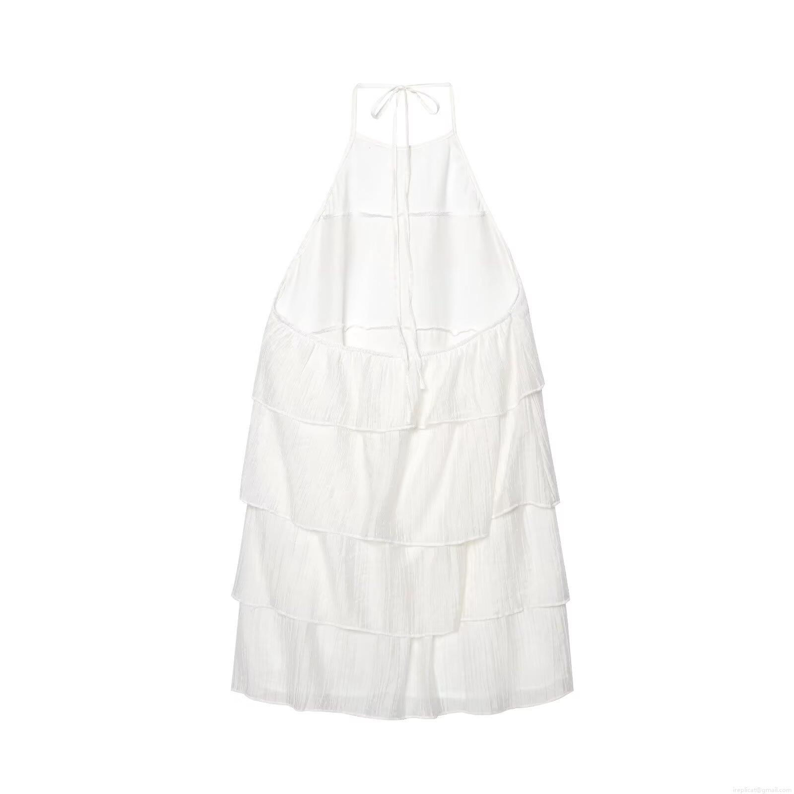 • Women Elegant White Halter Backless Layered Dress Sleeveless Pleated Tencel Mini Dress Summer Party Vacation Celebrity Style Sexy Tiered Sundress