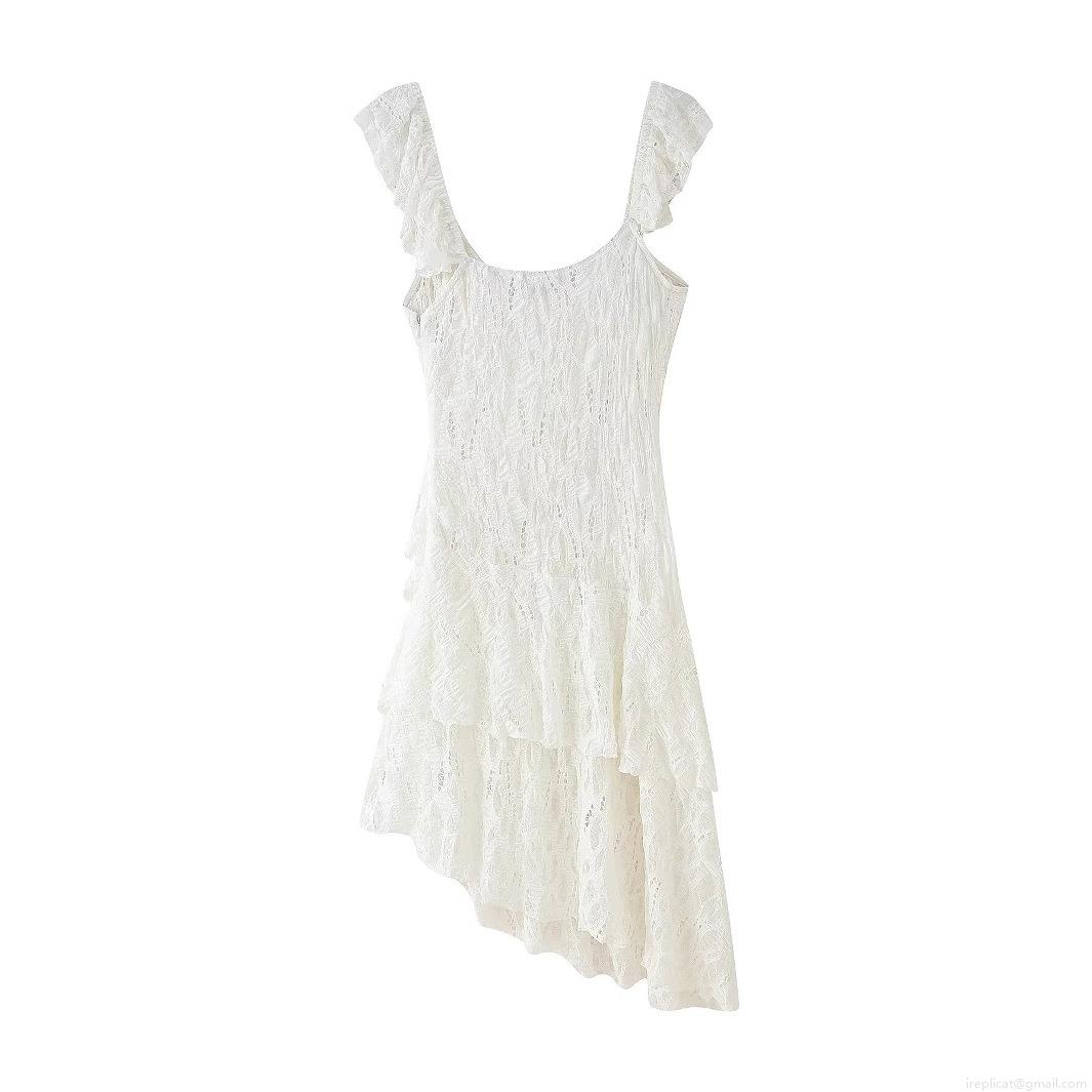 • Women Elegant White Lace Ruffle Strap Mini Dress V Neck Multi Layered Cake Irregular Hem Sleeveless Party Cocktail Dresses For Women