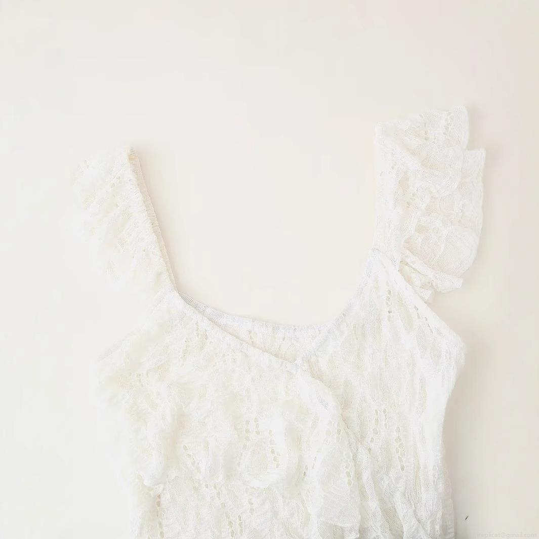 Women Elegant White Lace Ruffle Strap Mini Dress V Neck Multi Layered Cake Irregular Hem Sleeveless Party Cocktail Dresses For Women