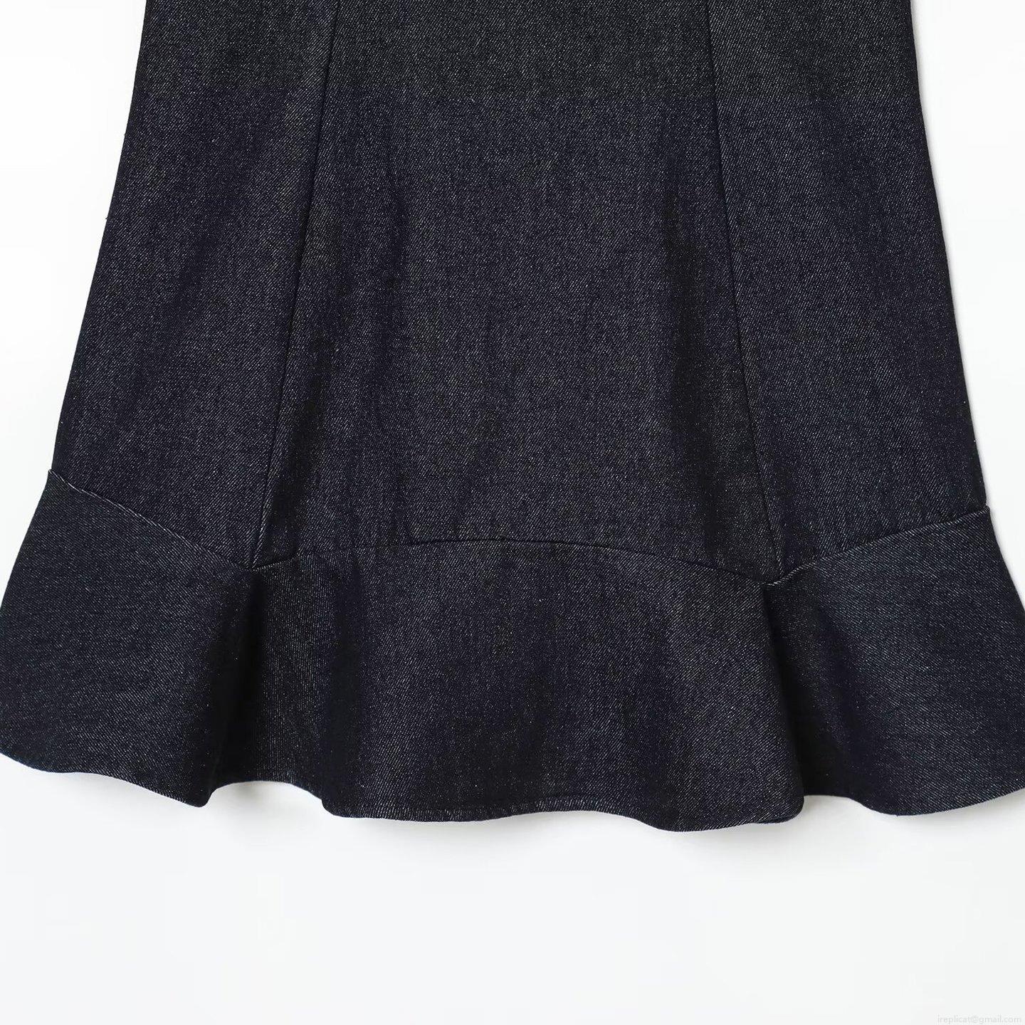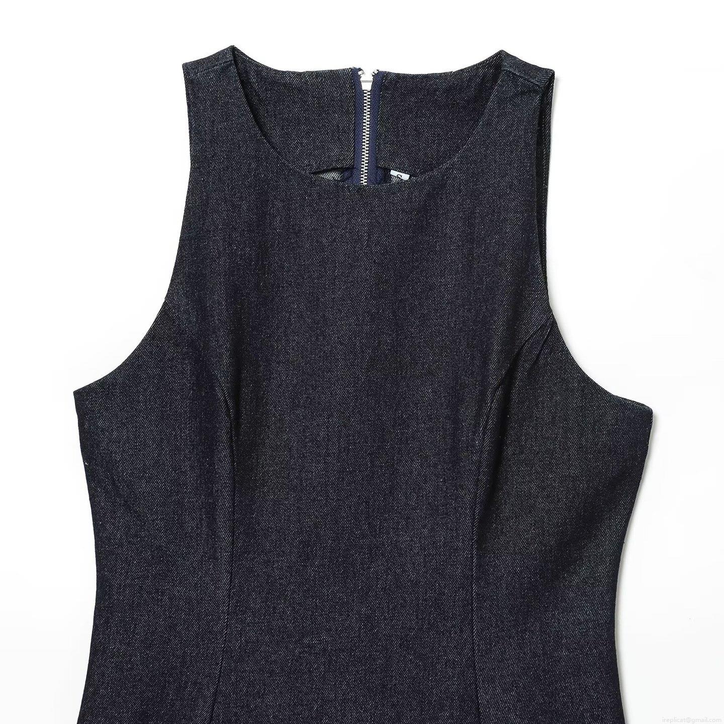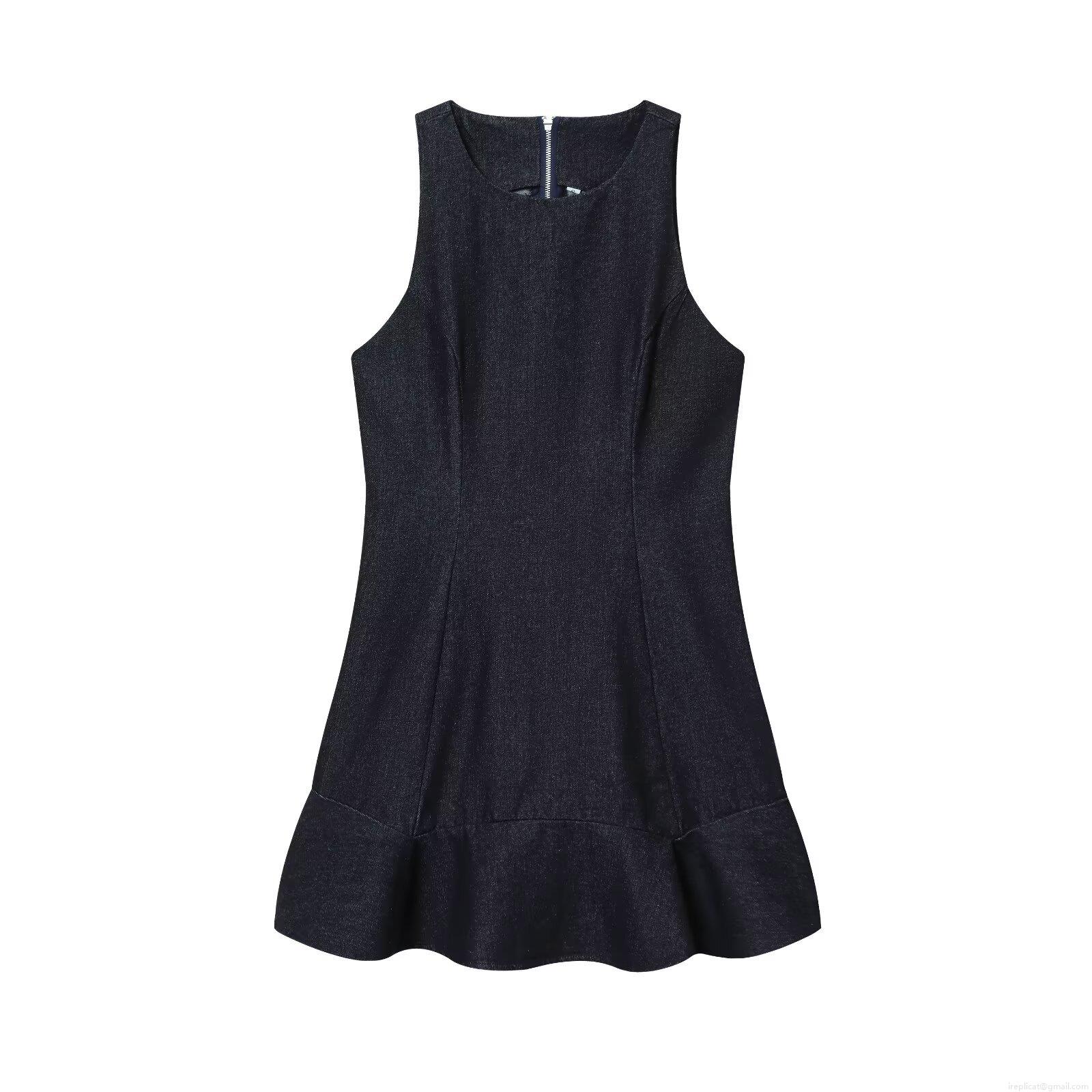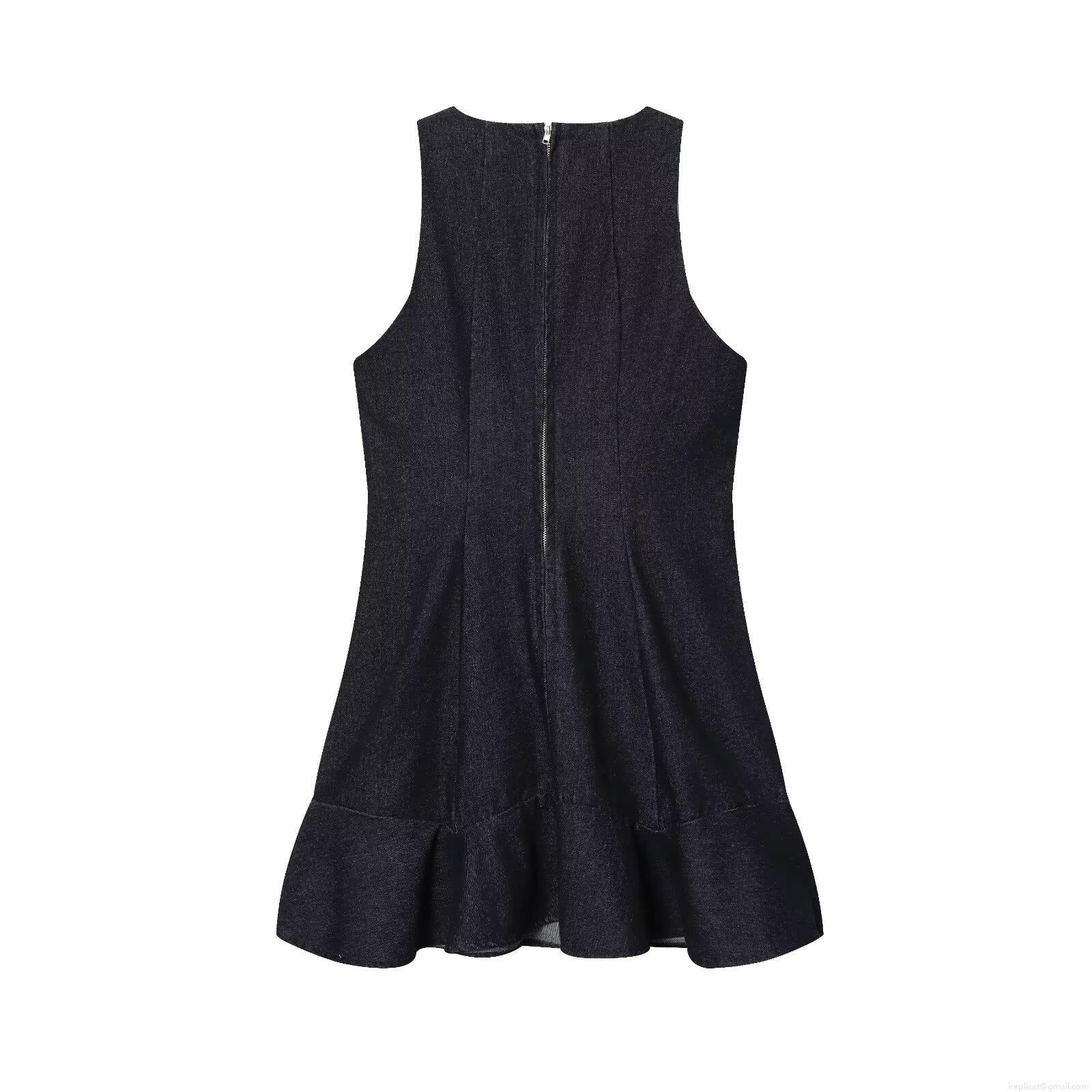 • Women Fashion Denim Style Sleeveless Mini Dress Elegant Round Neck Ruffle Hem Layered Decoration Back Zipper Tiered Bodycon Sun Dress Deep Blue