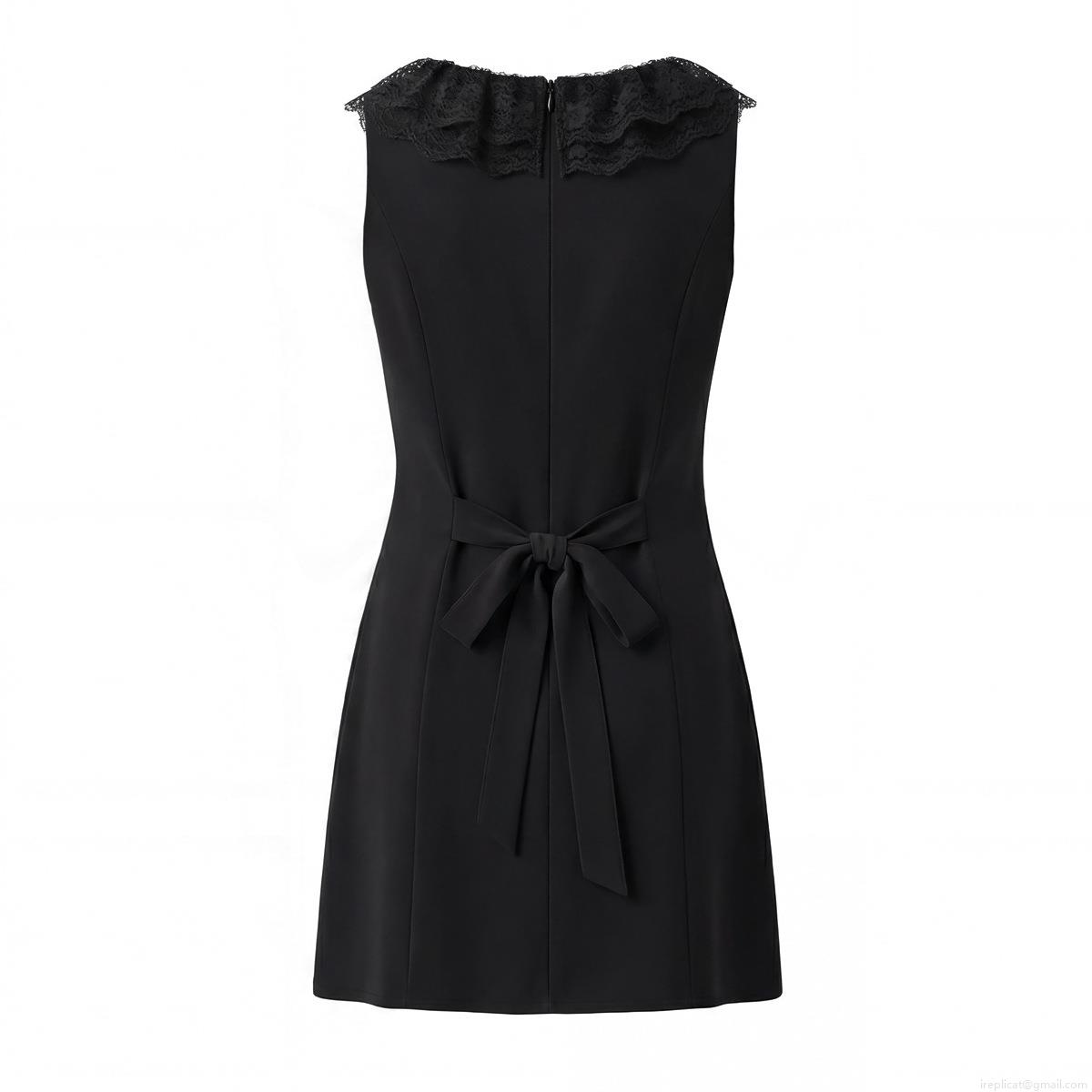 • Women Fashion Lace Trim Square Neck Sleeveless Mini Dress Sweet Solid Color Button Up A-Line Dress with Back Bow Knot