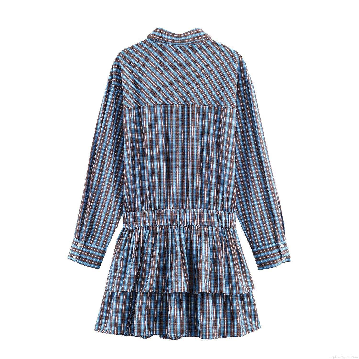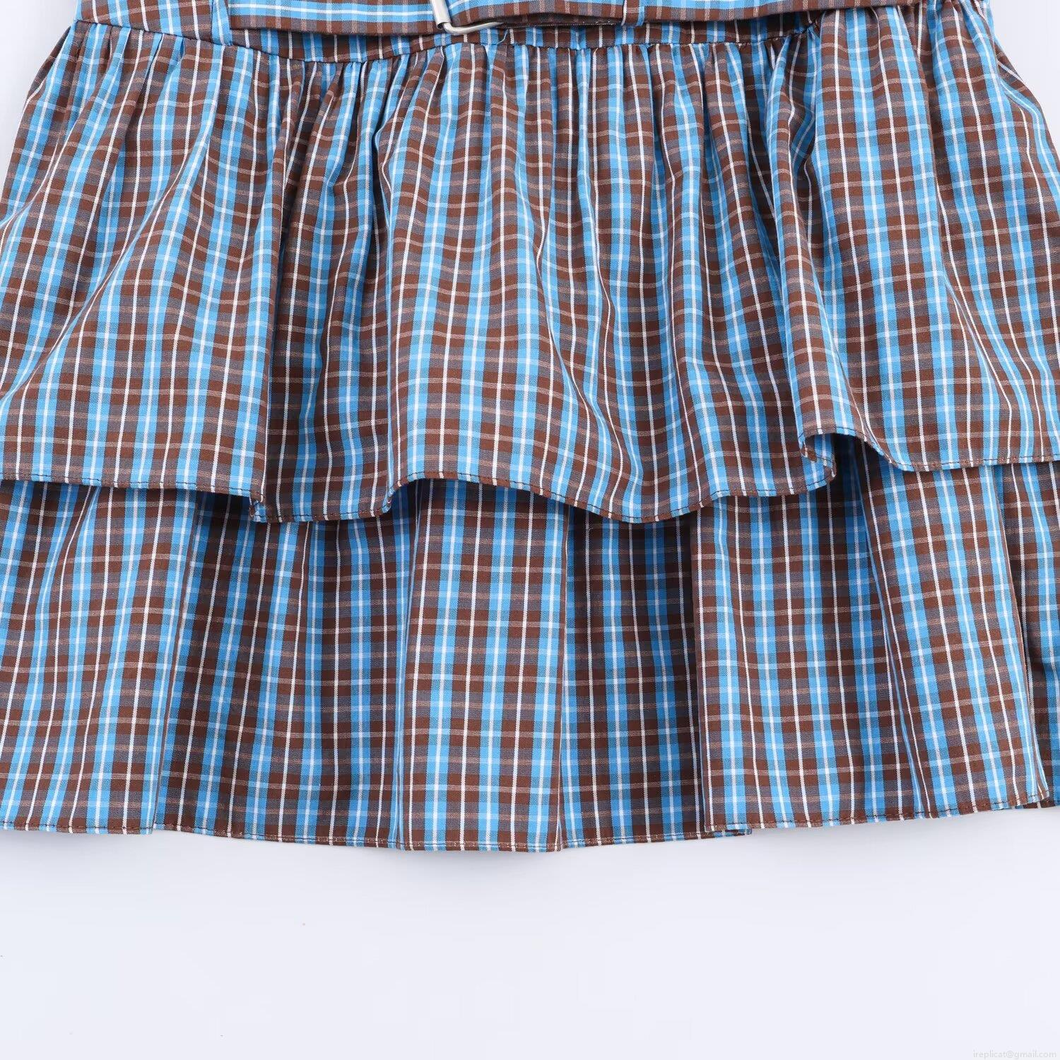 • Women Fashion Plaid Long Sleeve Mini Dress With Belt Retro Ruffle Layered Hem Shirt Collar Short Gown For Party Casual Ladies British Style Plaid Outfit