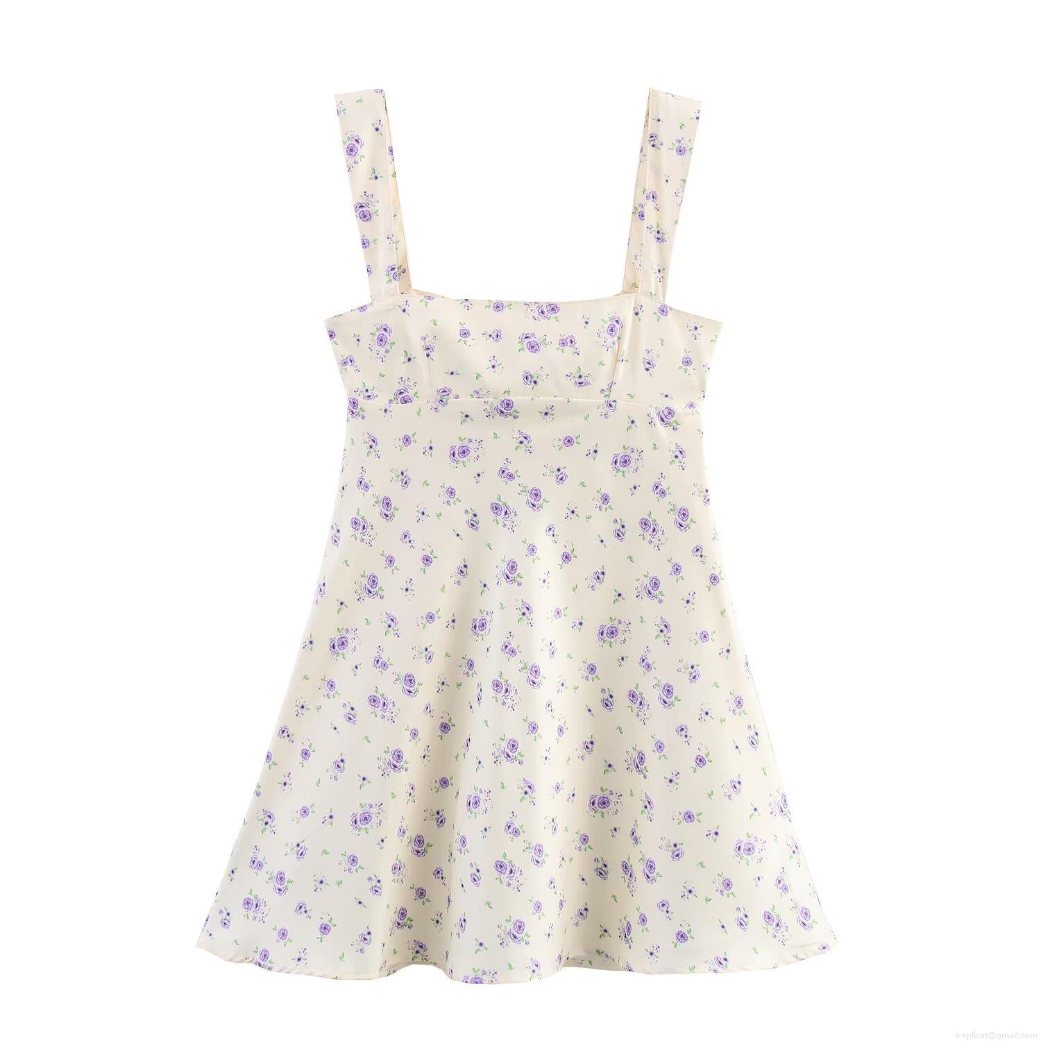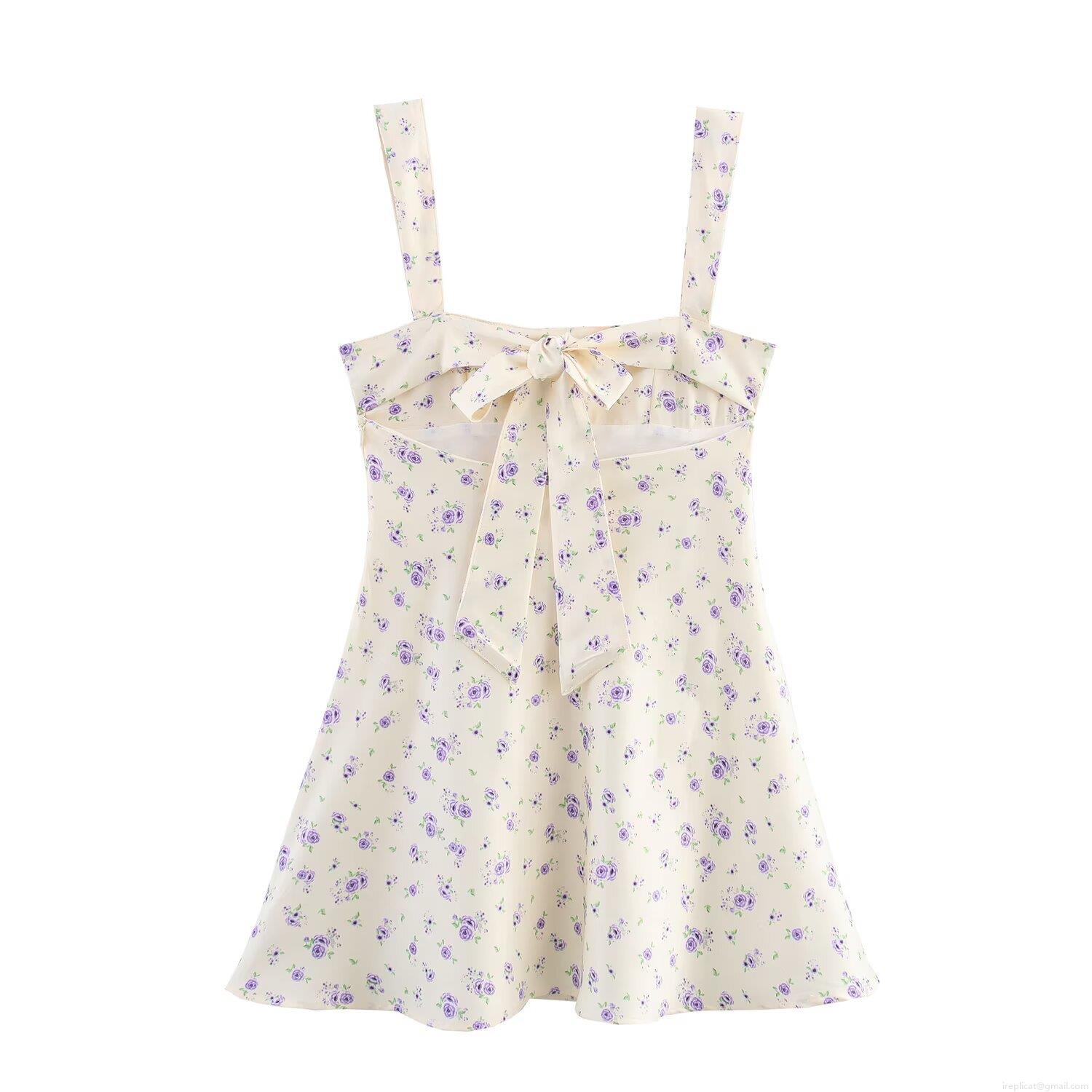 • Women Floral Print Cami Mini Dress Bow Back Satin Feel Sexy Sleeveless Square Neck Short Dress For Summer Vacation Party Elegant Lady Dress