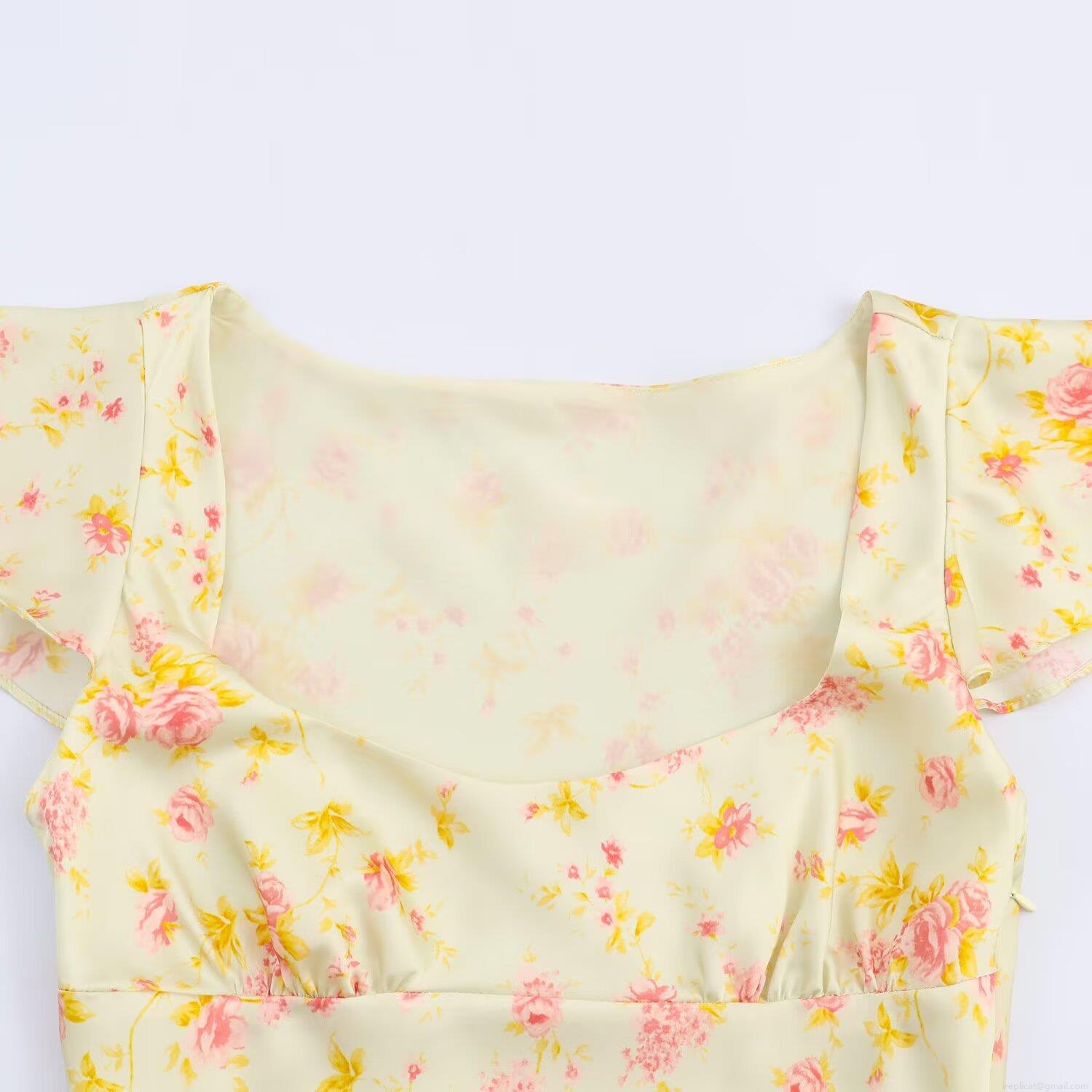 Floral Pattern, Ruffles, Rose, Printing, Lace Patchwork, Flying Sleeves