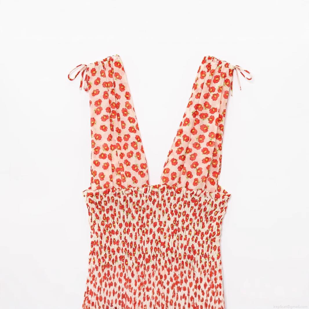• Women Floral Print Mini Dress Sexy V-Neck Sleeveless Spaghetti Strap Chiffon Dress With Bow Shoulders Smocked Waist Summer Beach Party Dress