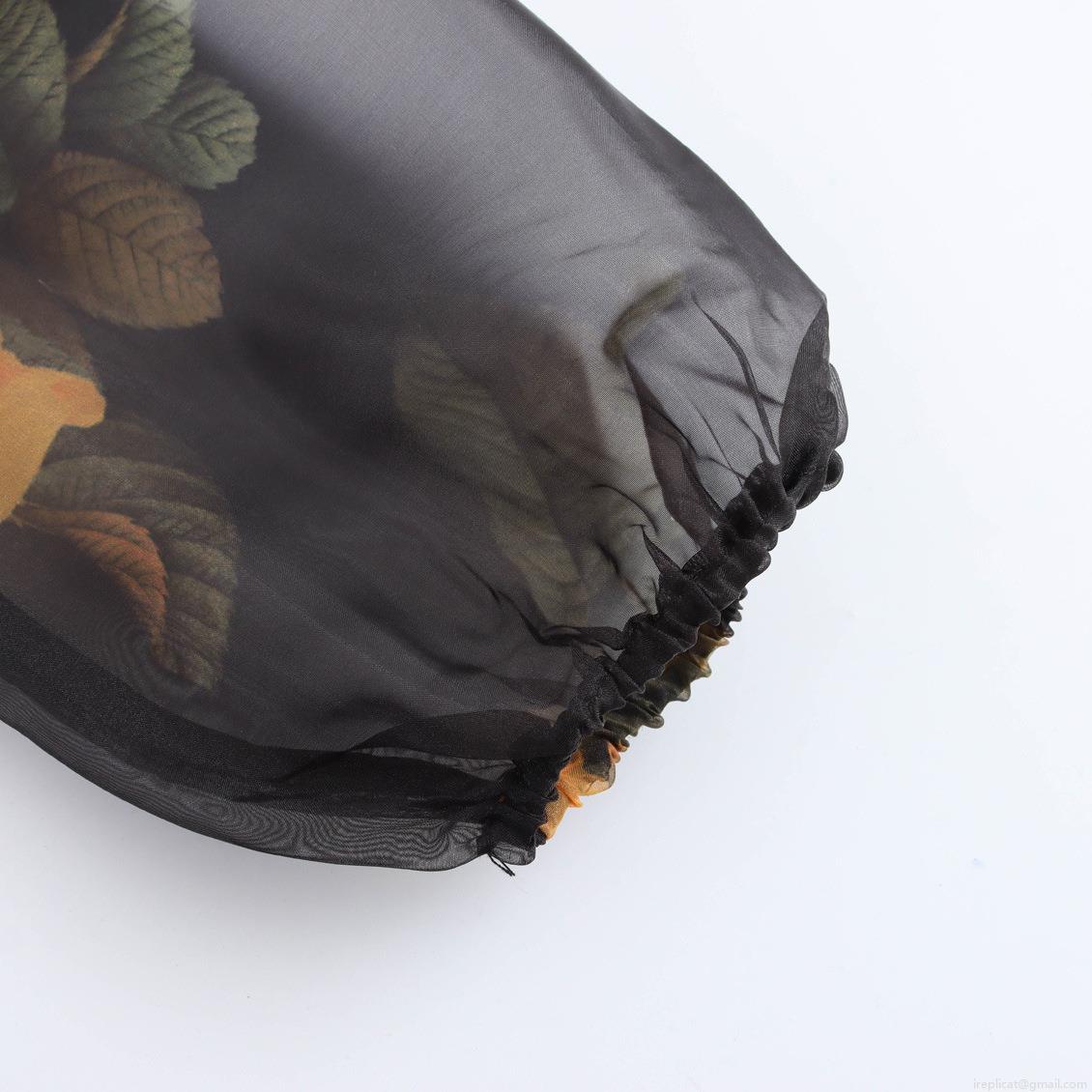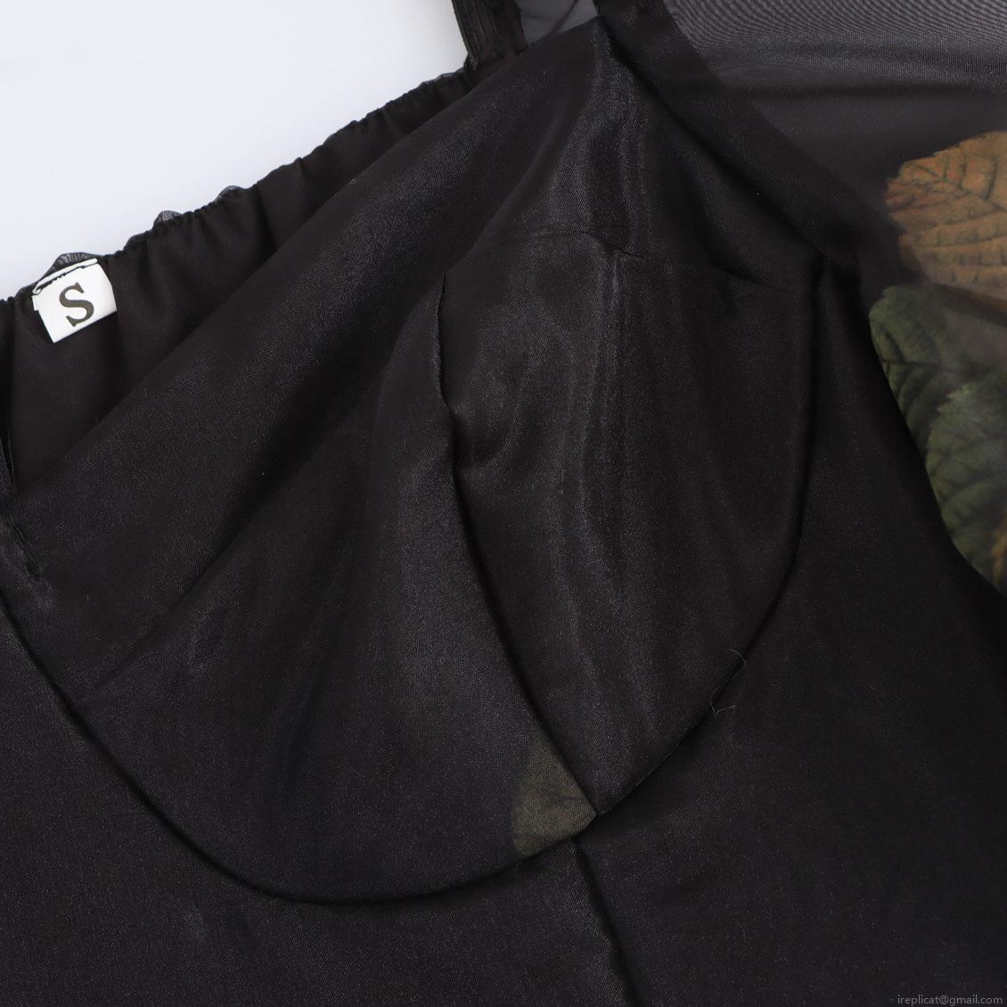 Digital, Plants And Flowers, Zipper, Mesh Splicing, Square Collar, Leaf Pattern, Tulip Skirt