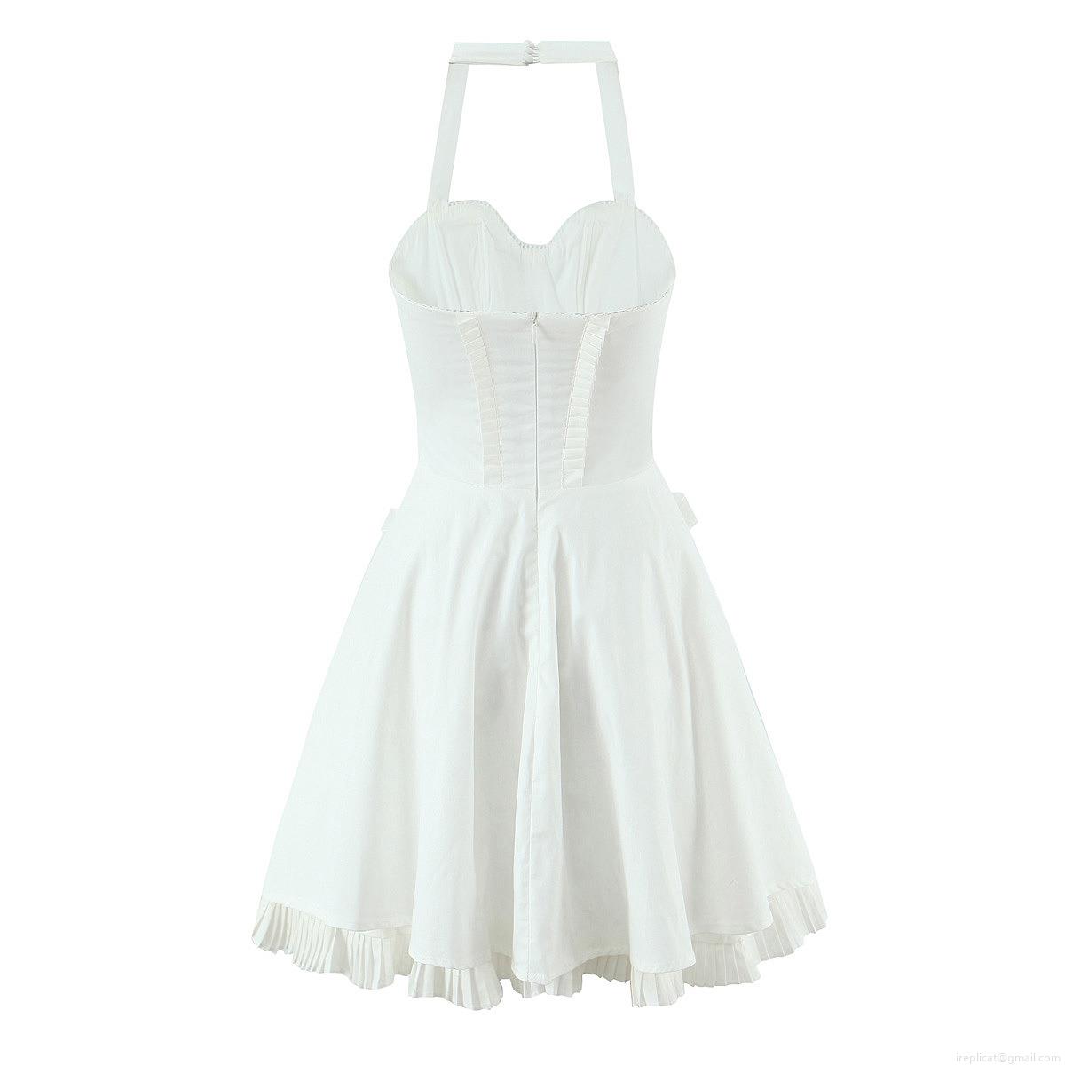 • Women French Halter Mini Dress Cotton Polyester Blend Single Breasted Pleated Hem Dress For Summer Party Banquet Sexy Corset Style High Waist Elegant Dress