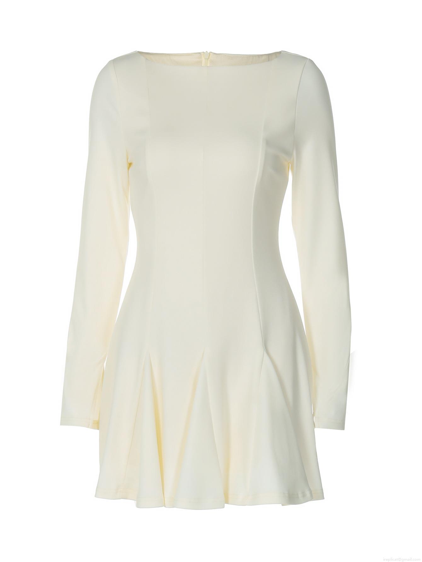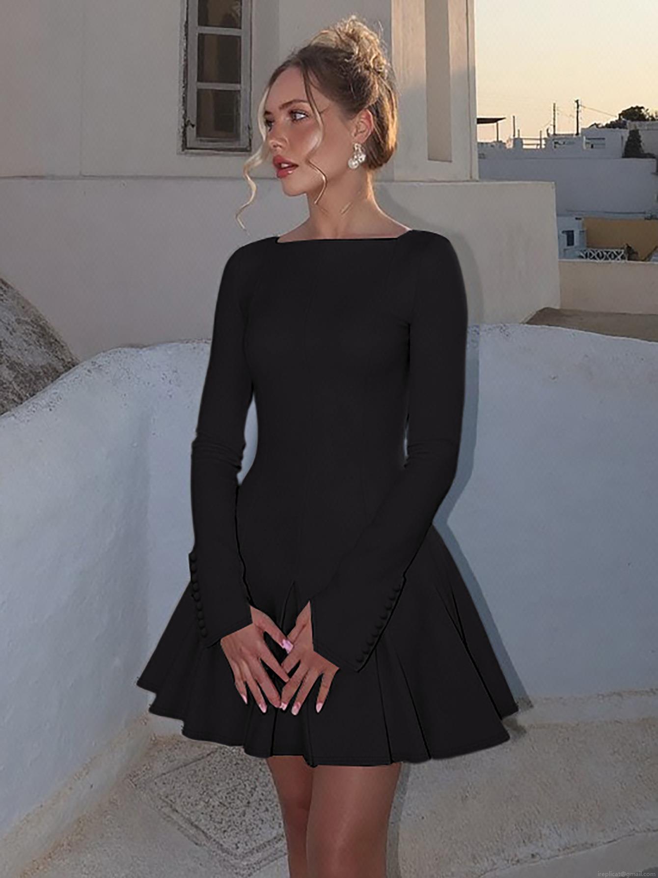 • Women French Style Long Sleeve Mini Dress Polyester Spandex Slim Fit Pleated Skirt Round Neck Beaded Elegant Evening Party Office Lady Bodycon Dress