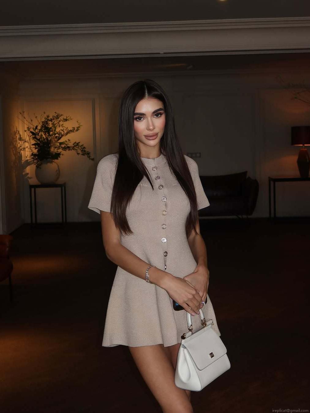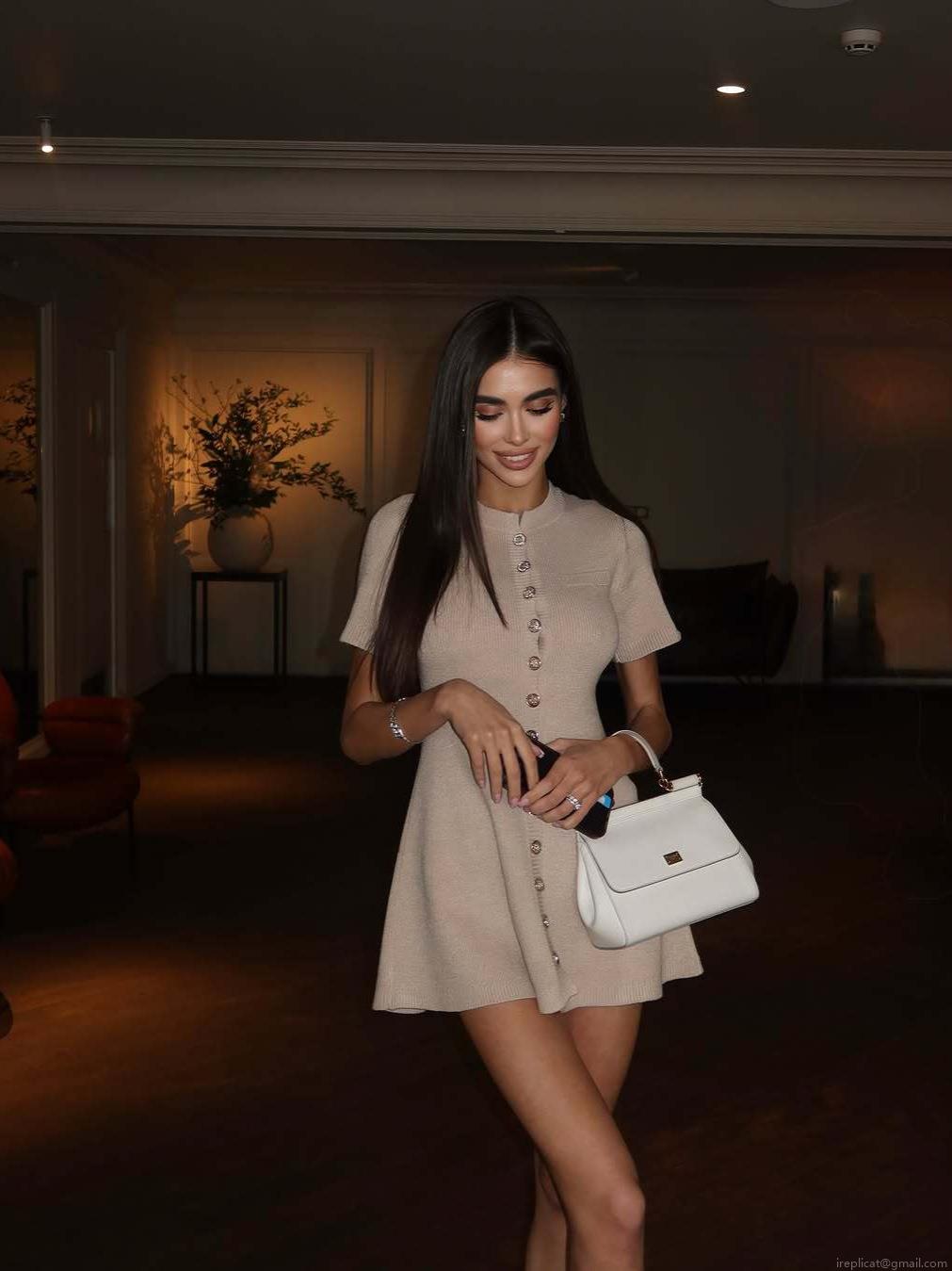 • Women French Style Short Sleeve Knitted Mini Dress With Metal Buttons Slim Fit Elegant Summer Bodycon Dress Cotton Blend Knitwear For Casual Office Party
