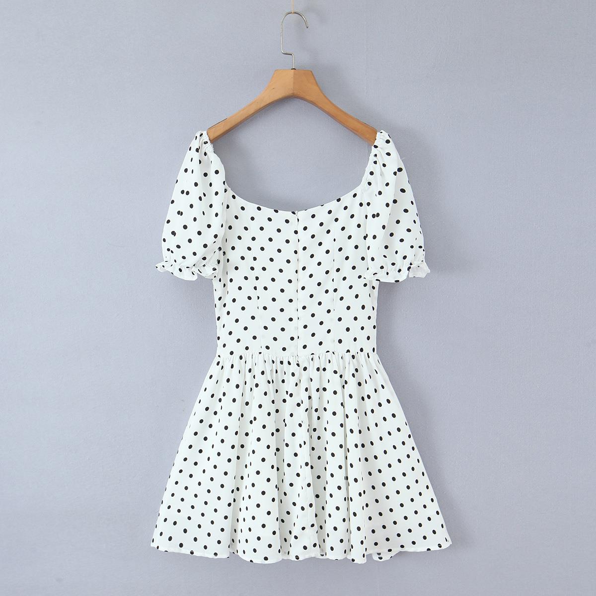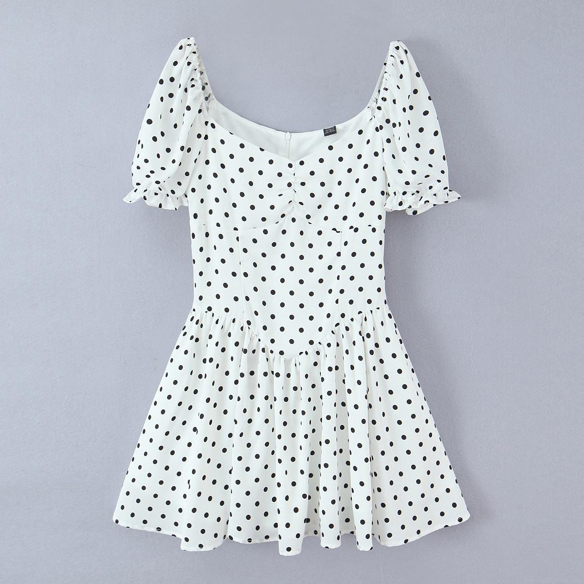 • Women French Vintage Polka Dot Puff Short Sleeve Mini Dress Elegant Heart Neck High Waist A-Line Polyester Short Dresses For Women Summer Dating Casual Style