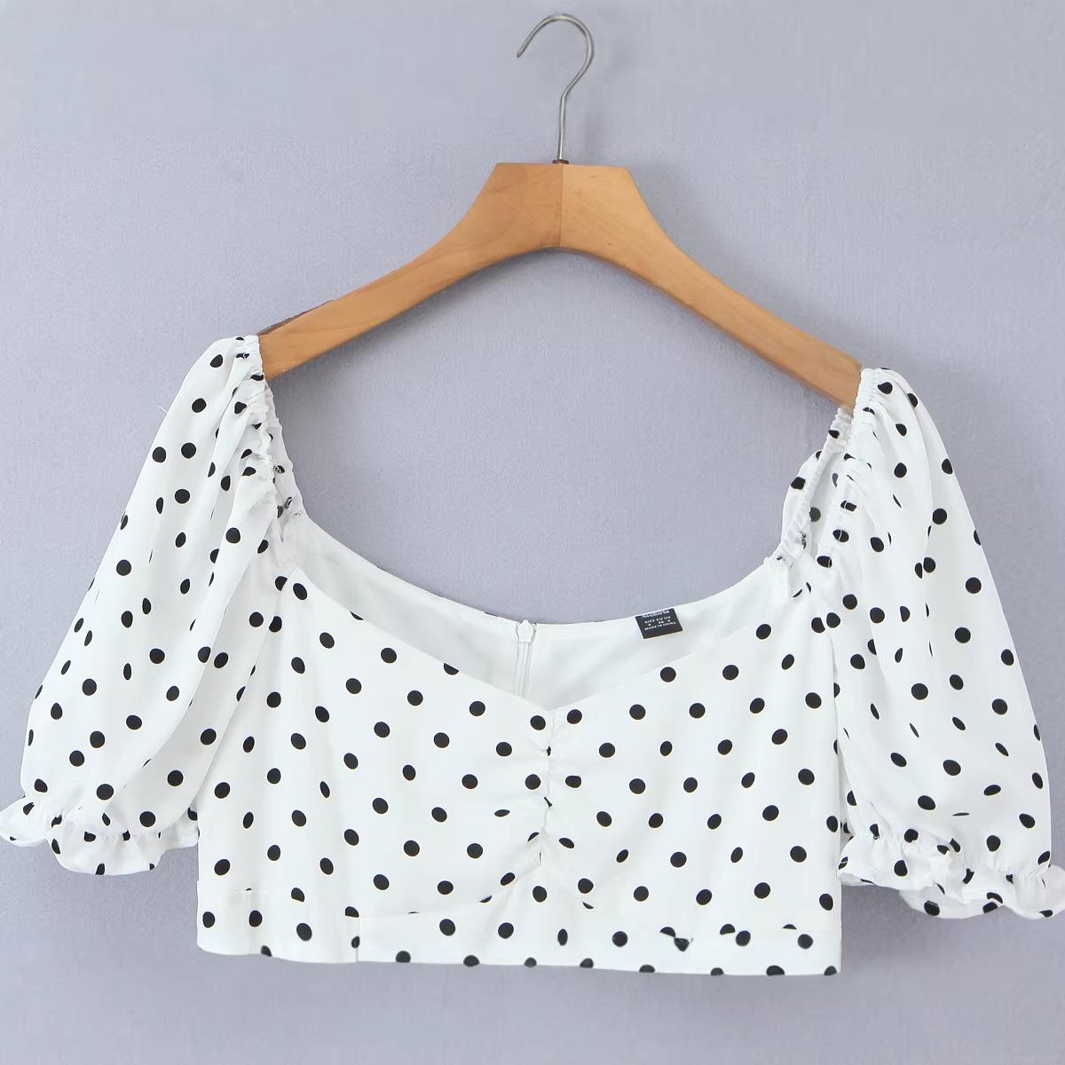 Polka Dots, Dot, Pleats, Ruffles, Puff Sleeves, French Square Neck