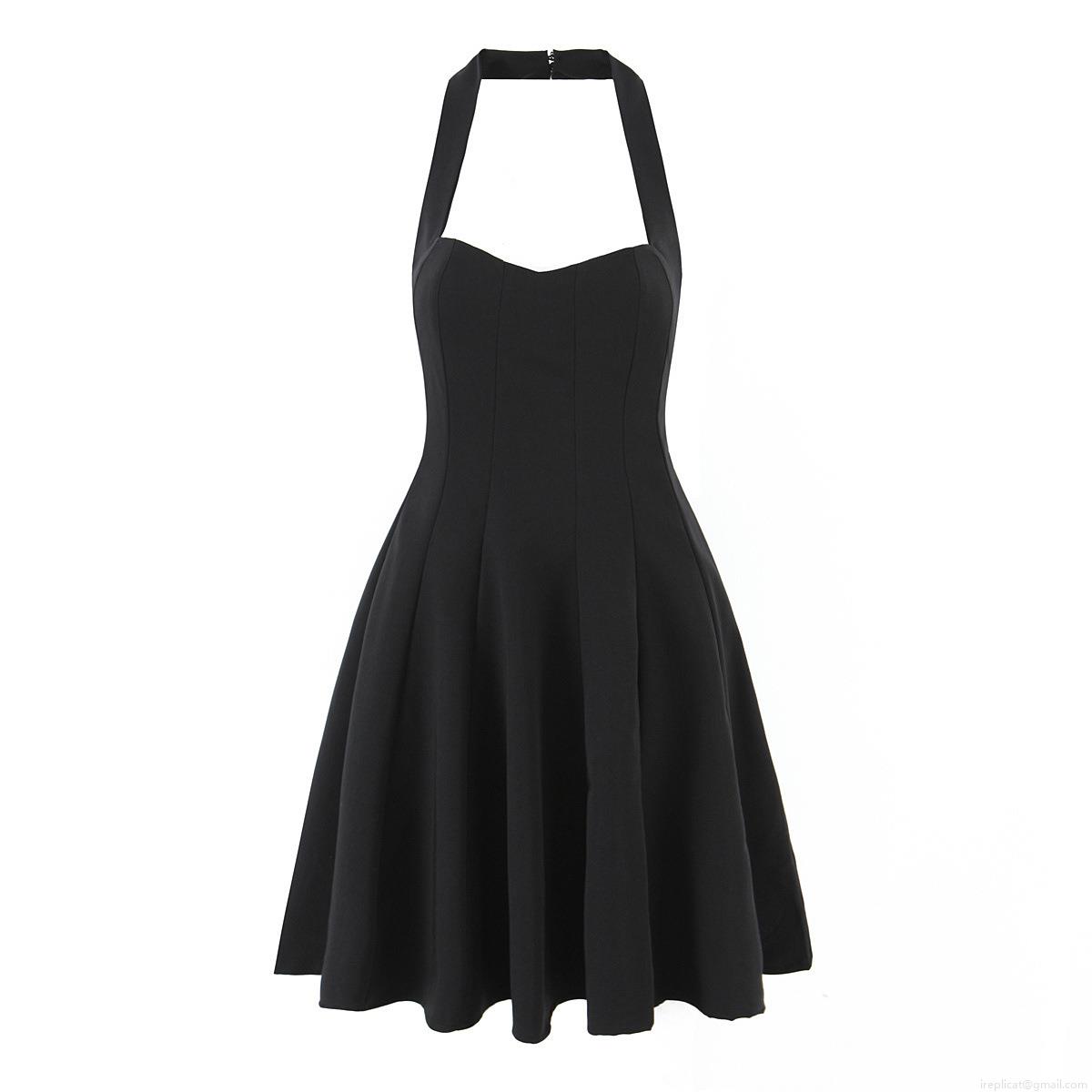 • Women Halter Backless Mini Dress Sexy Lace Up A-Line Party Dress Black Polyester Rayon Spandex Sleeveless Hepburn Style Short Dress For Women