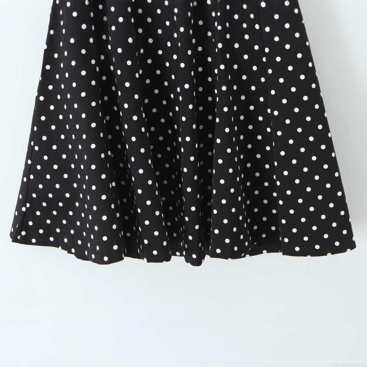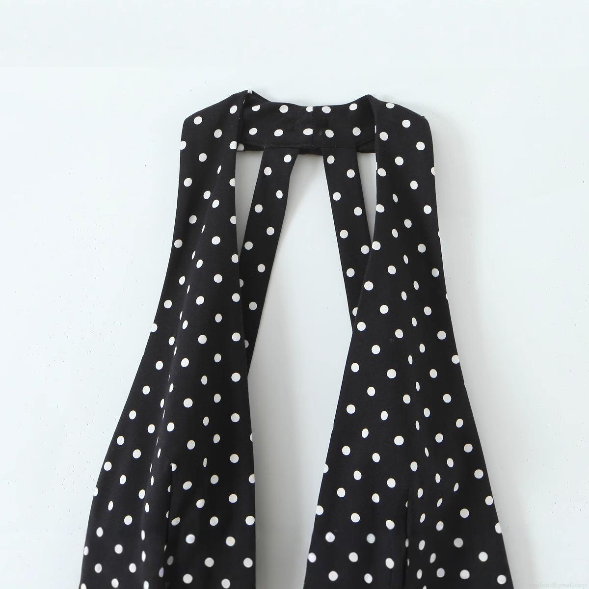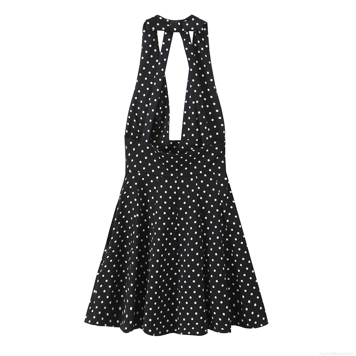 Polka Dots, Neckband, Backless, Deep V-neck, A-line Skirt