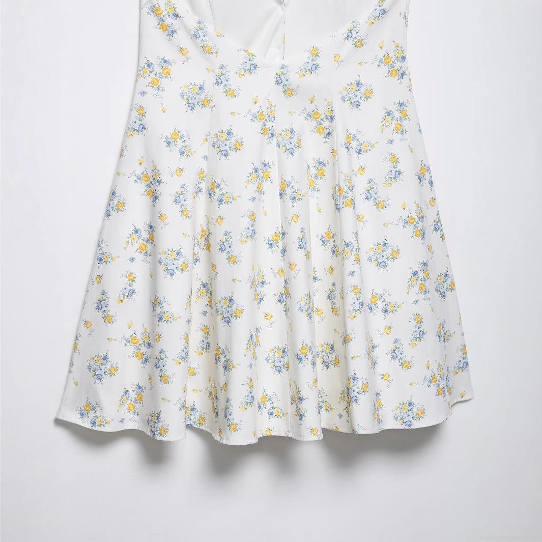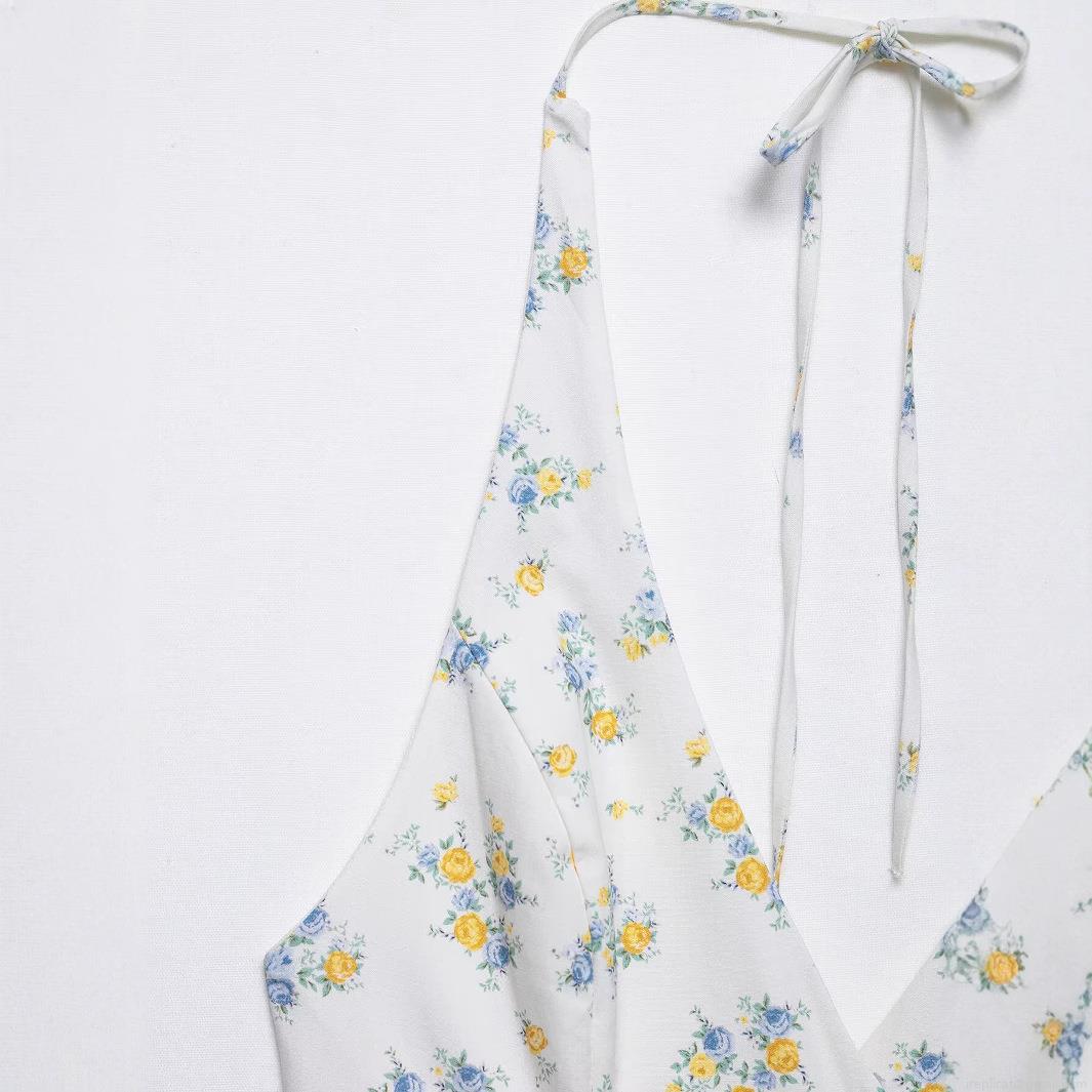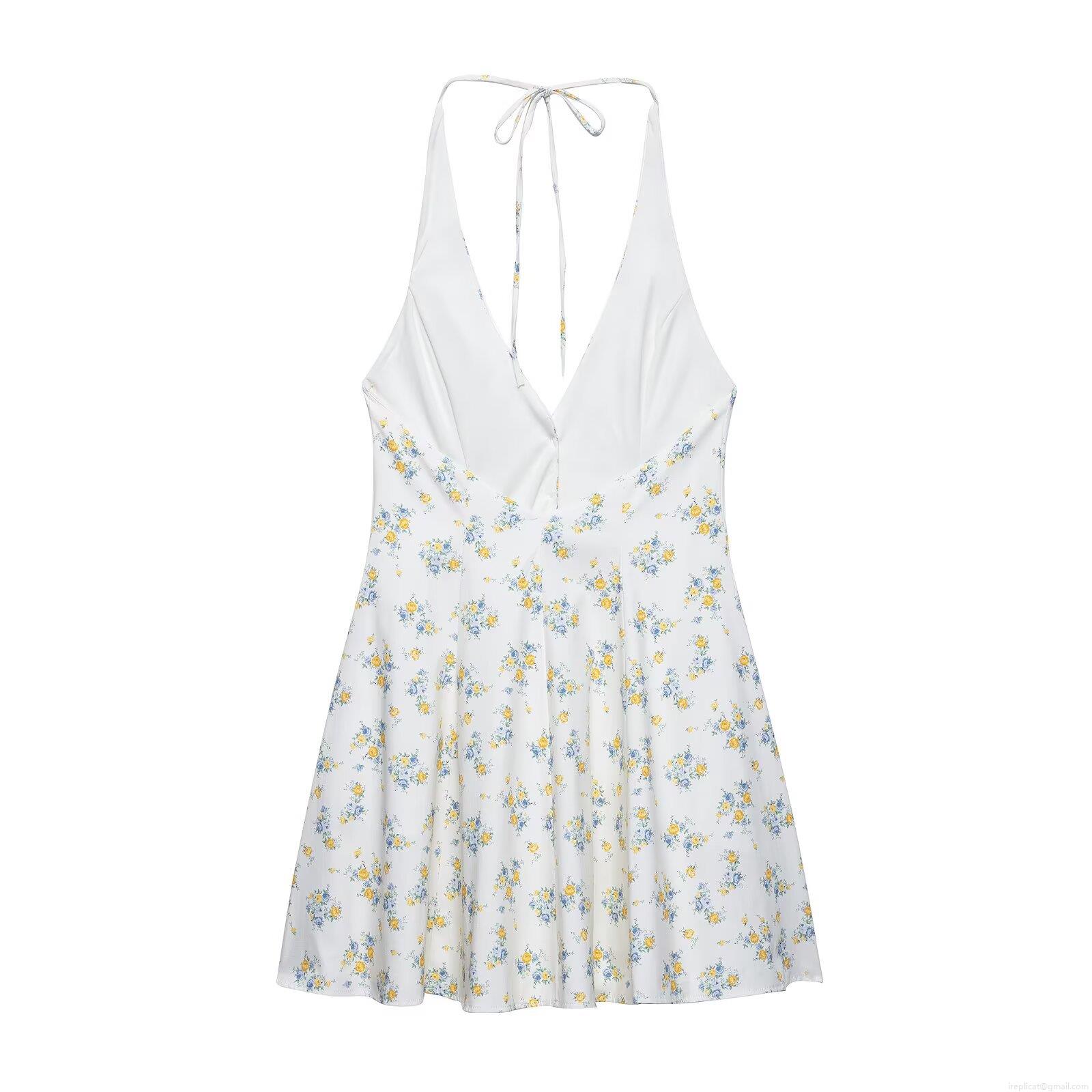 • Women Halter Neck Backless Floral Print Mini Dress Sexy Lace-up V-neck A-line Summer Sundress Streetwear Short Dress