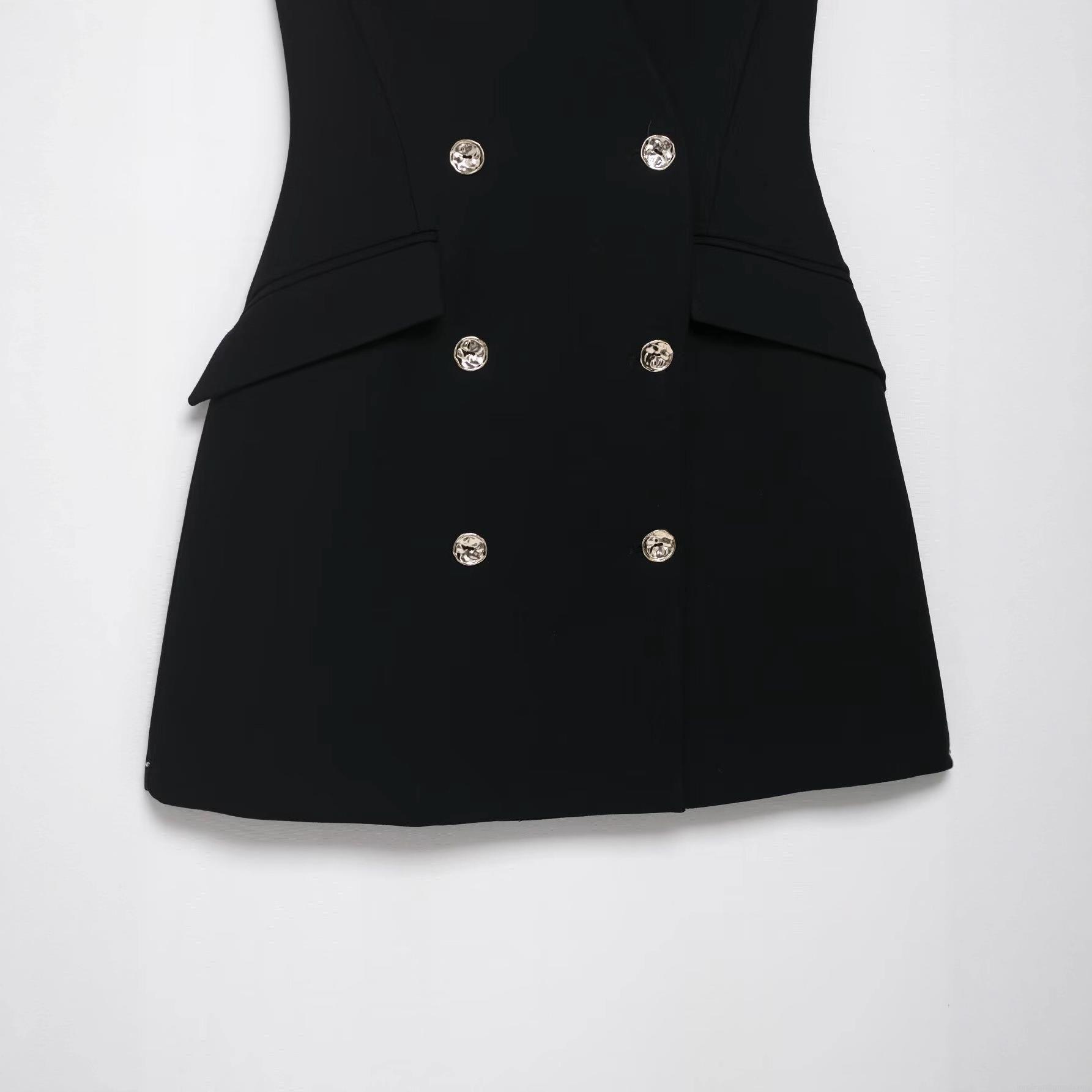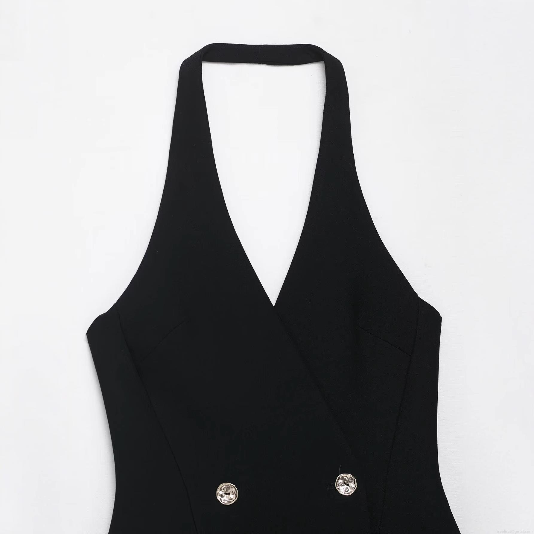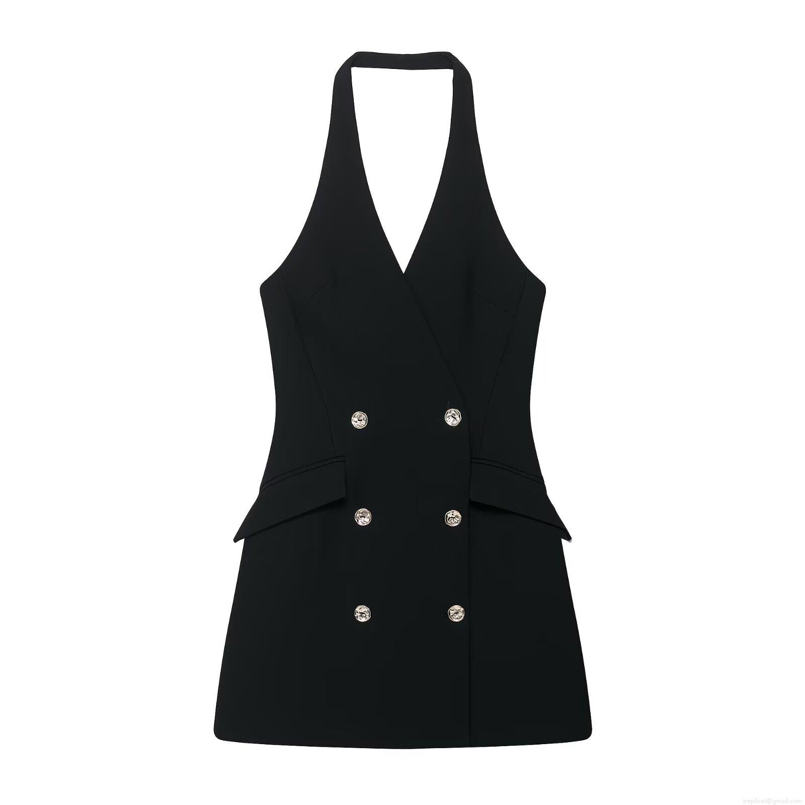 • Women Halter Neck Double Breasted Suit Mini Dress Polyester Sexy Backless Sleeveless Bodycon Party Dress With Metal Buttons Elegant Lady Clubwear