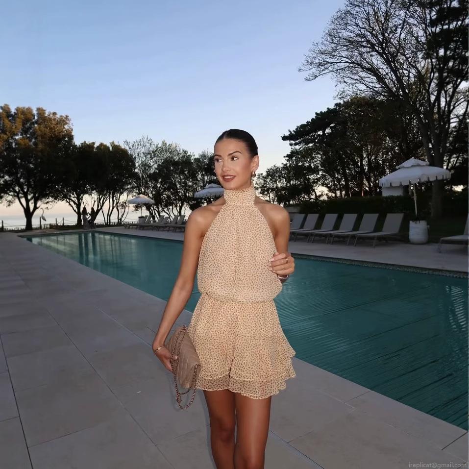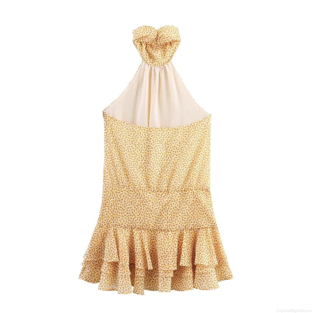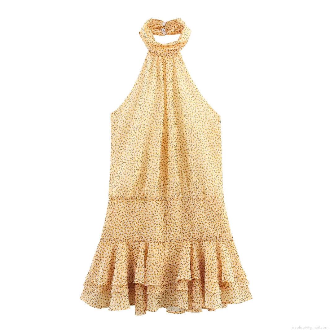 • Women Halter Neck Floral Print Mini Dress Elegant Ruffle Tiered Chiffon Sundress Sleeveless Backless Boho Vacation Dress For Ladies